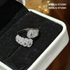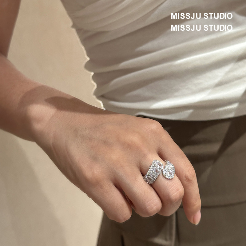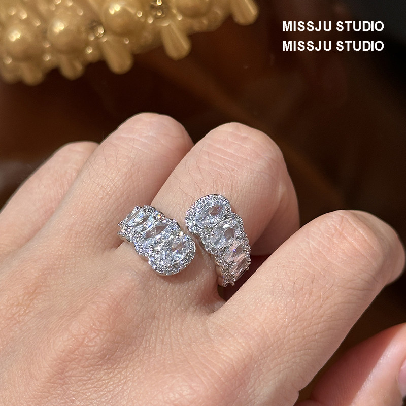 时尚个性轻奢锆石满钻排钻戒指中指食指戒椭圆钻小众独特指环开口