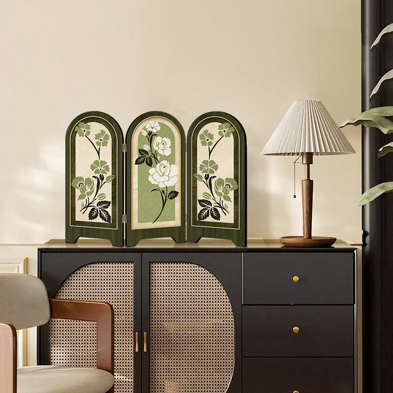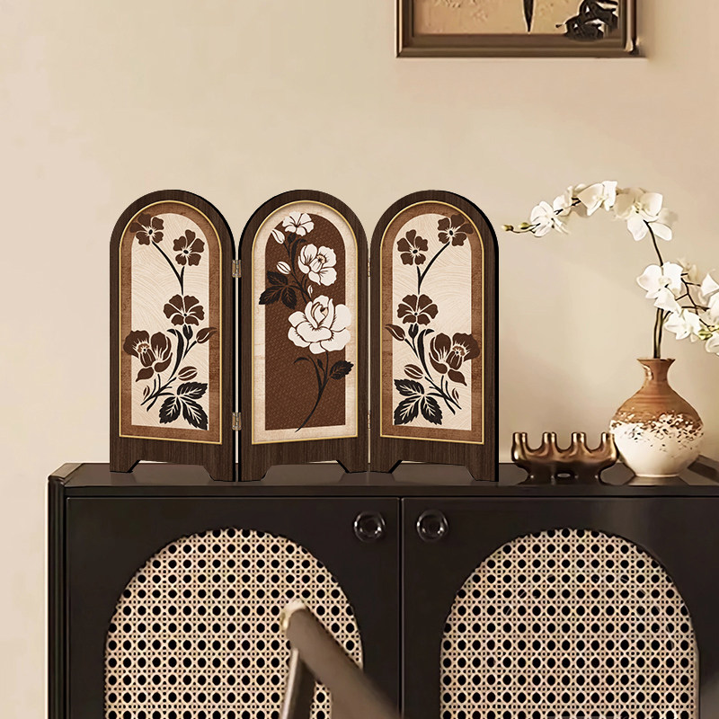 中古风花卉屏风桌面摆件玄关柜茶桌家居装饰品复古艺术客厅摆画