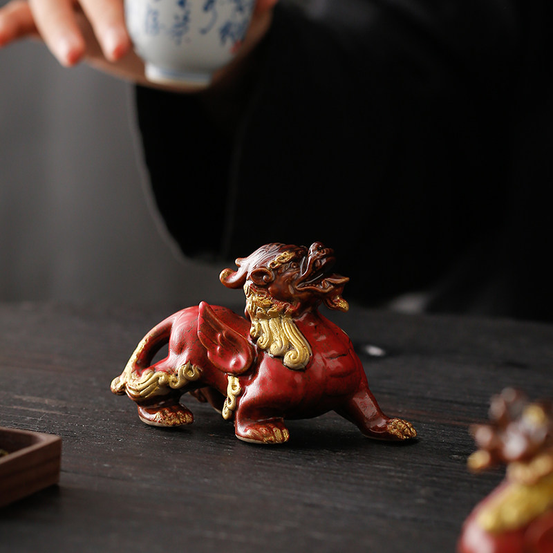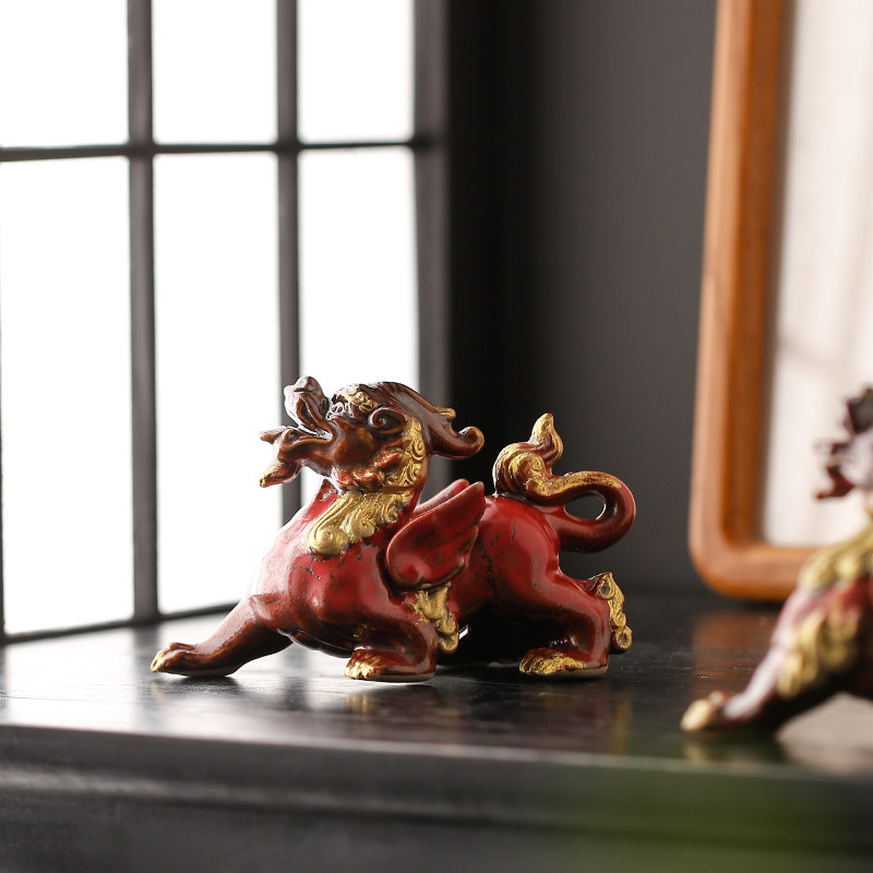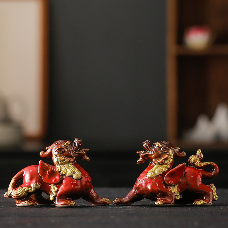 陶瓷招财貔貅一对茶宠摆件工艺品中式办公室桌面家居客厅桌面装饰
