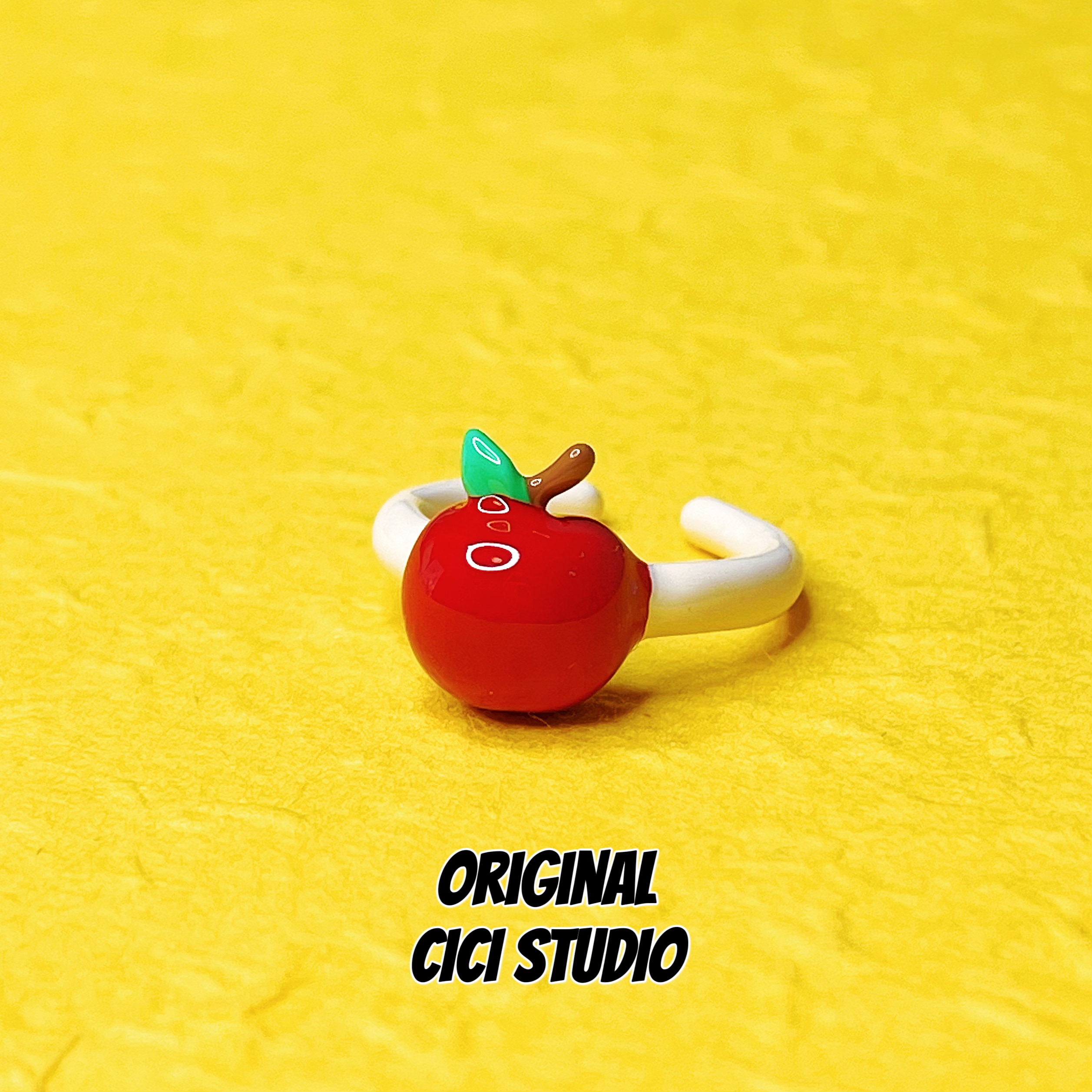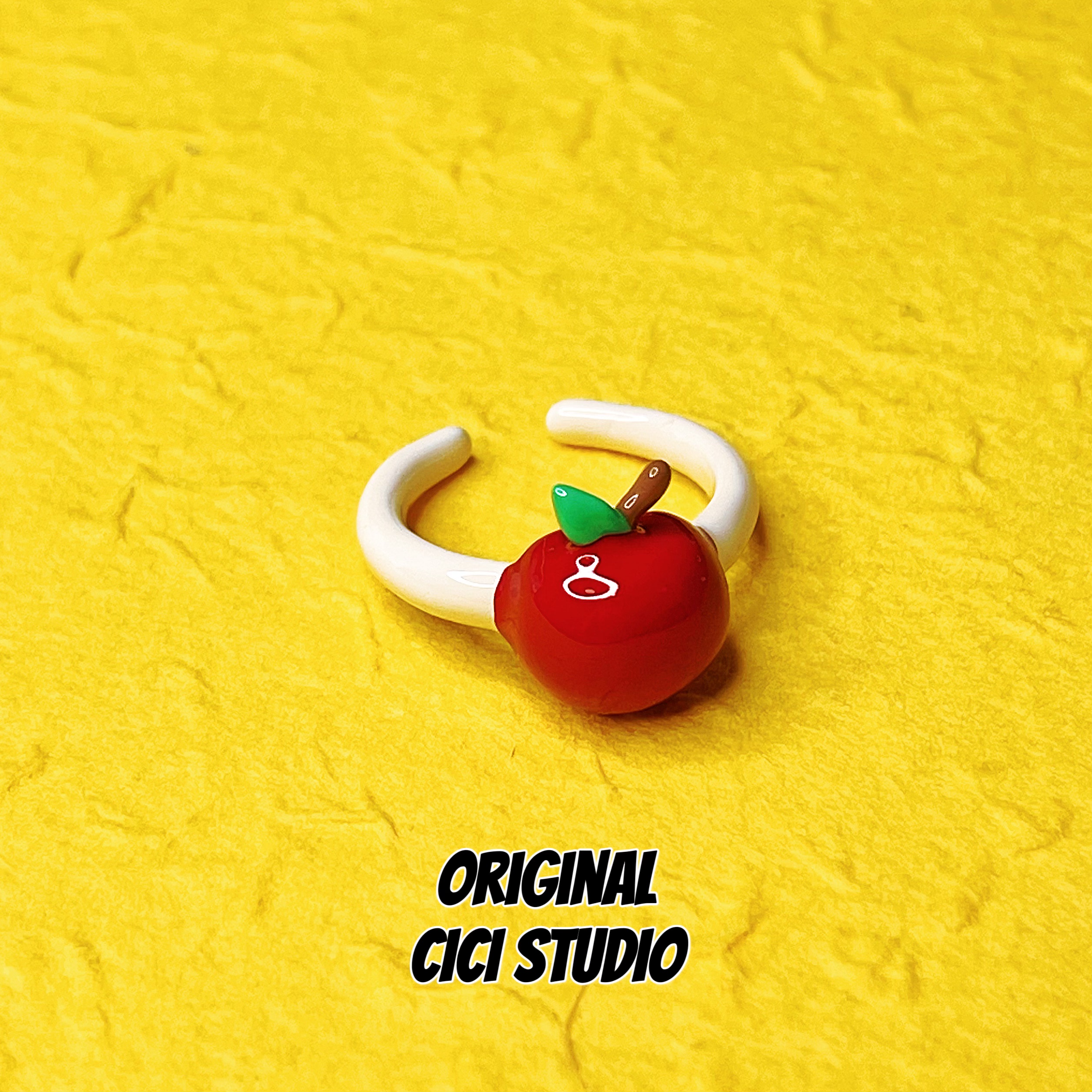 CICI STUDIO小众个性精工滴釉红色苹果戒指平安好运多巴胺开口戒