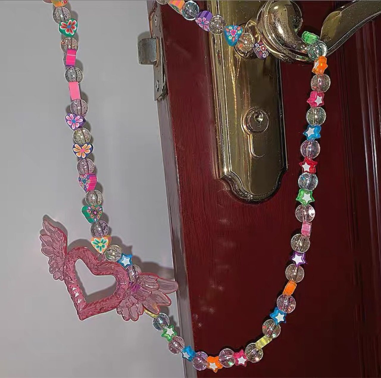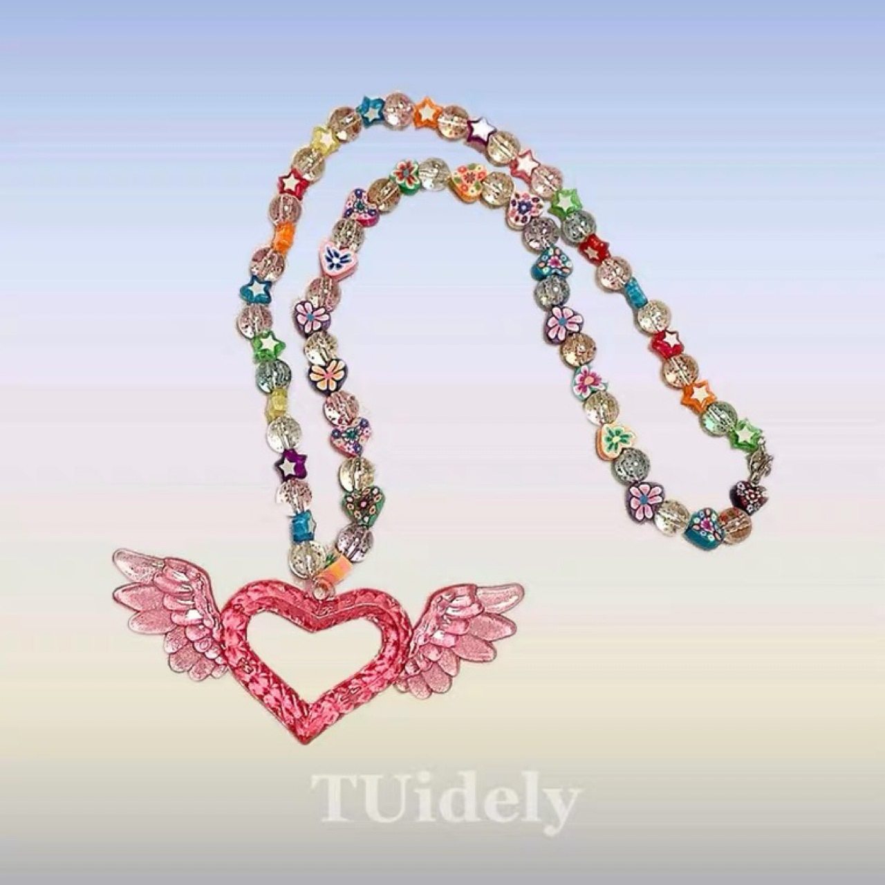霹雳辣妹自制Y2K亚克力爱心项链翅膀吊坠彩绘日本进口闪珠项链