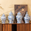 玄关收纳摆件景德镇陶瓷手工客厅单色釉玛瑙黄将军罐鲜花瓶插花瓶