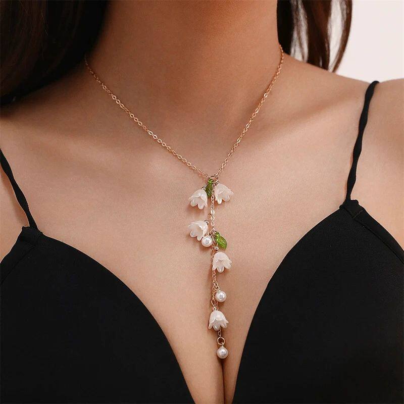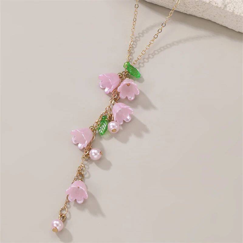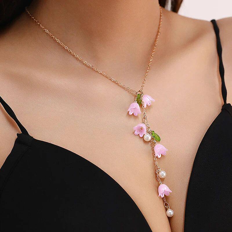 Tassel Valley Flower Pendan Necklace for Women Exquisie Pea