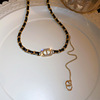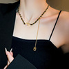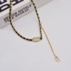 字母项链法式轻奢复古高级感编织颈链 百搭黑色皮绳choker项圈