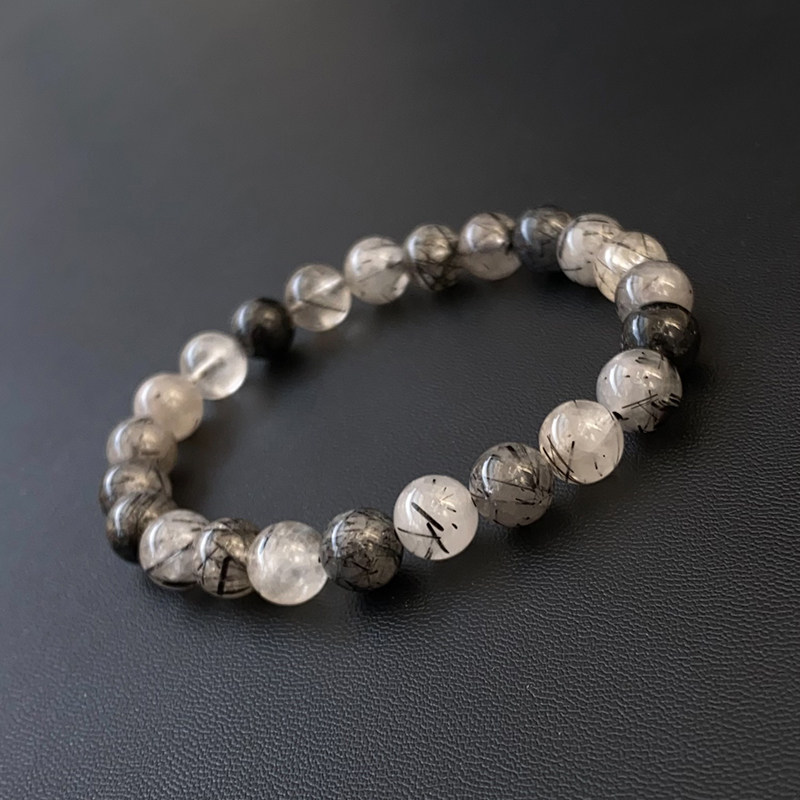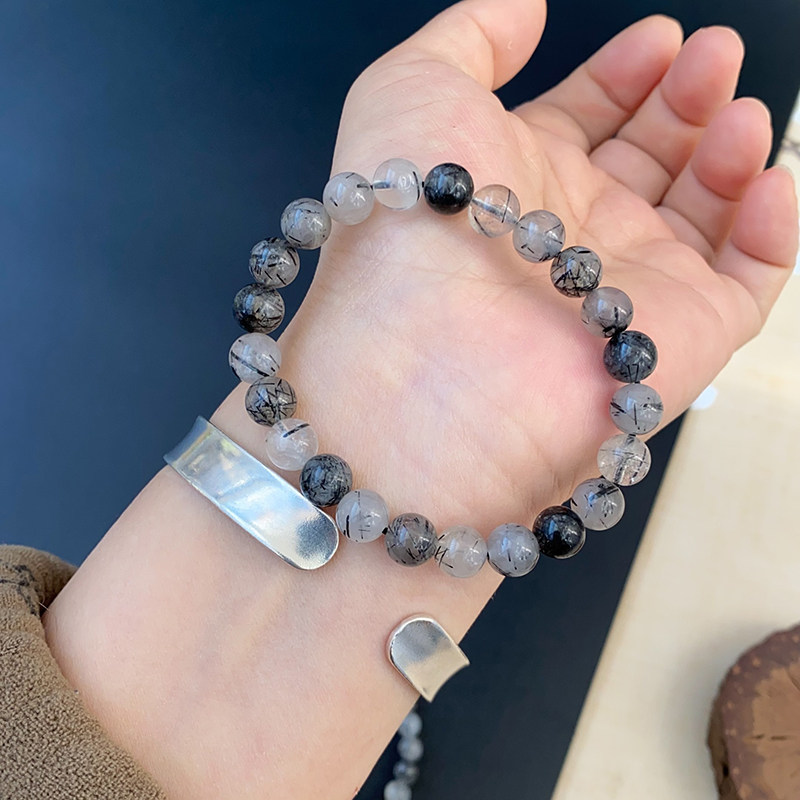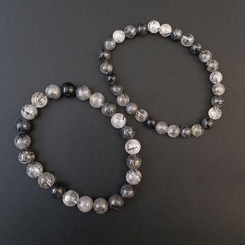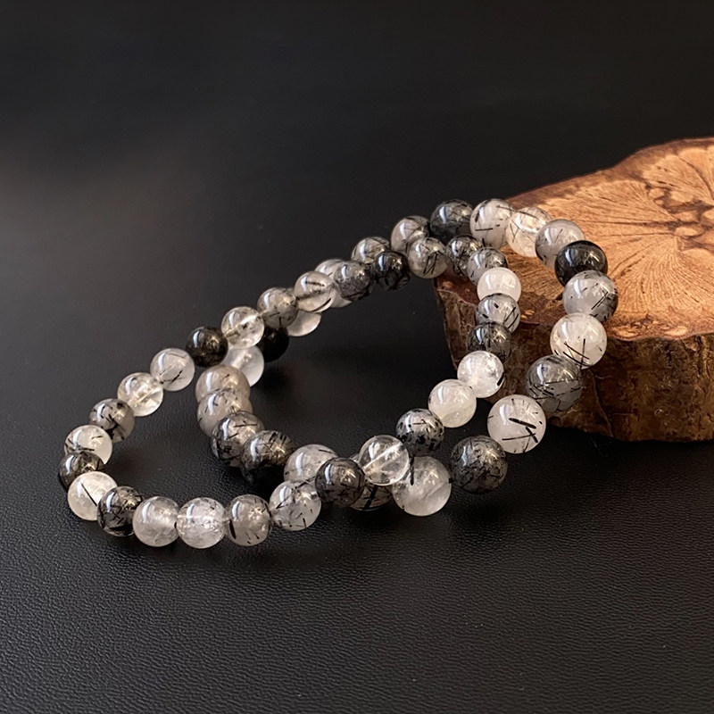 天然黑发晶手链男女款钟爱酷酷的感觉巴西黑色白水晶手串单圈真品