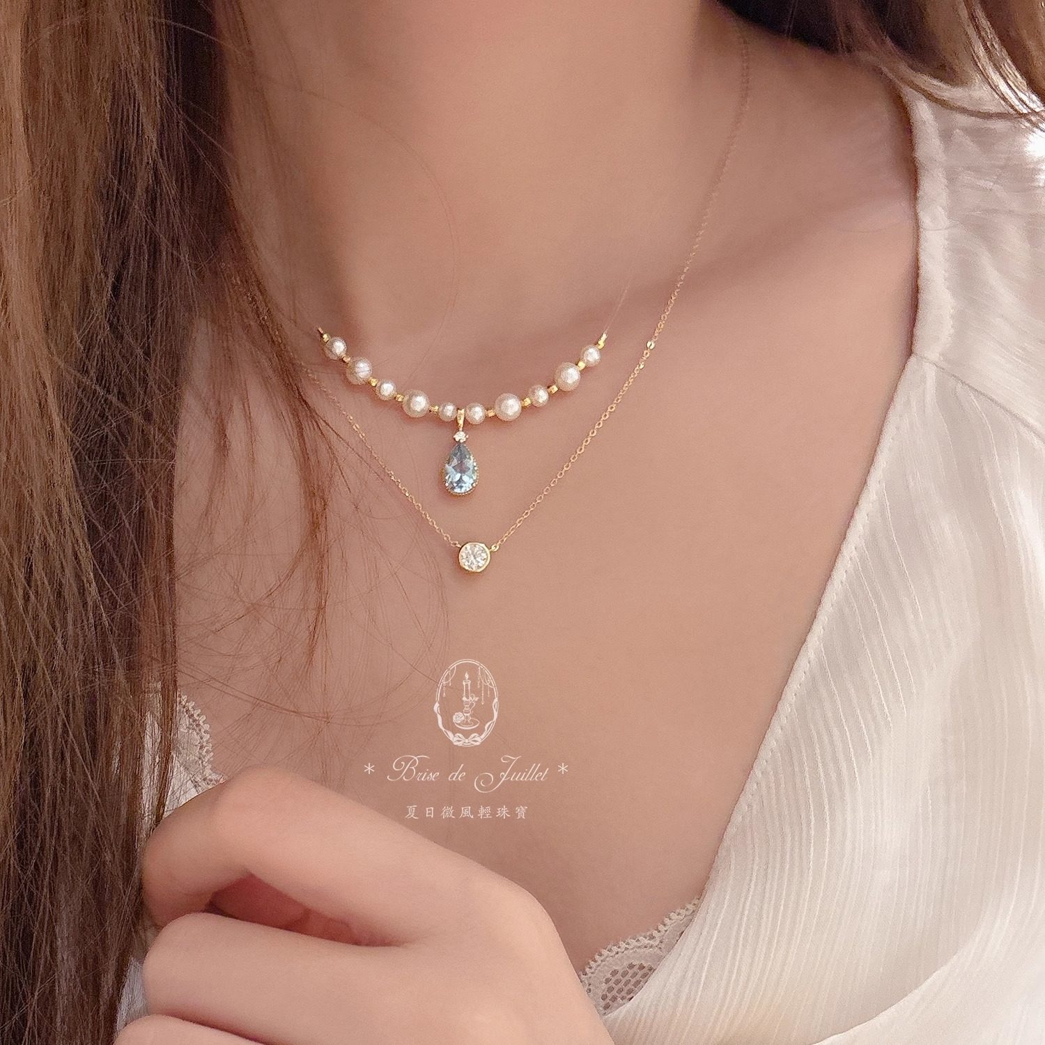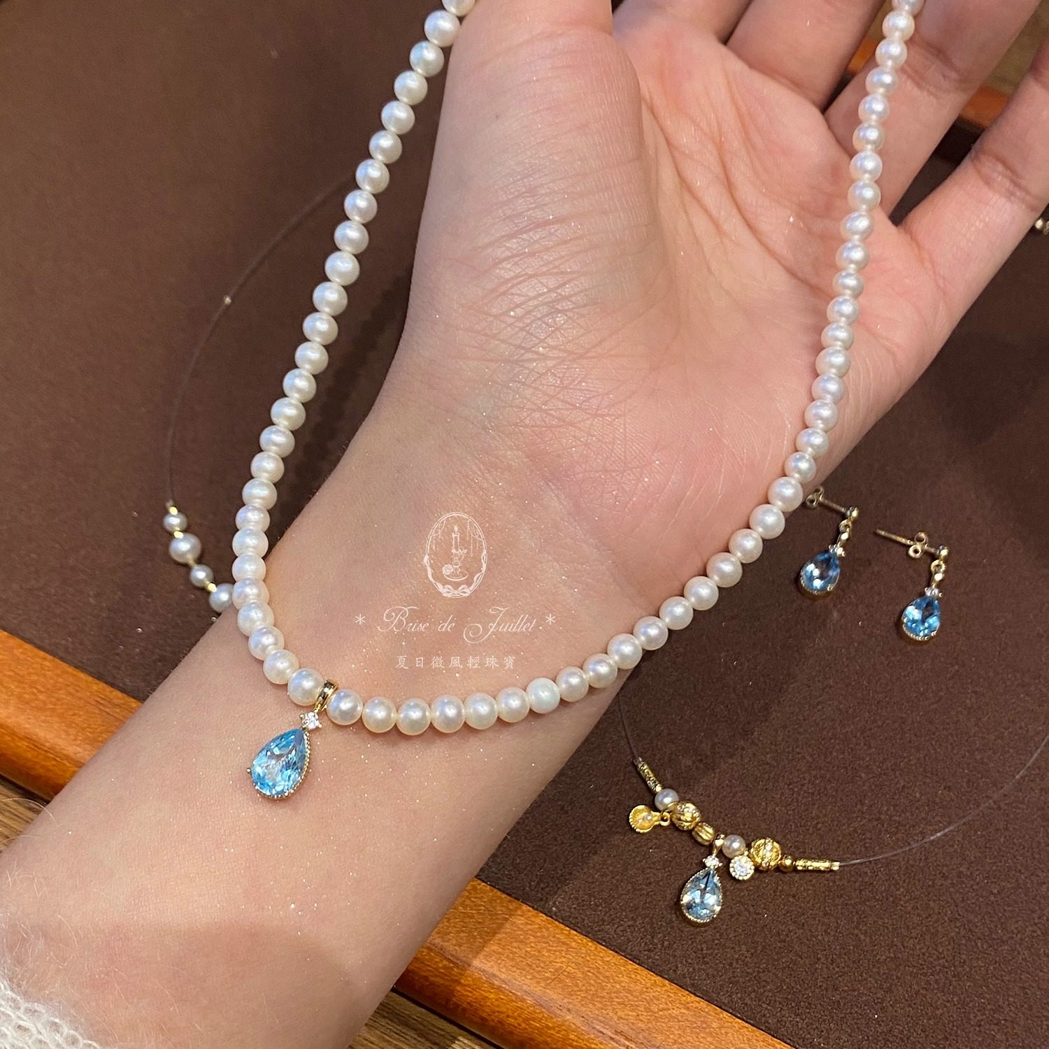 夏日微风*情迷夜巴黎。定制托帕石项链耳钉夹珍珠金通勤高级气质