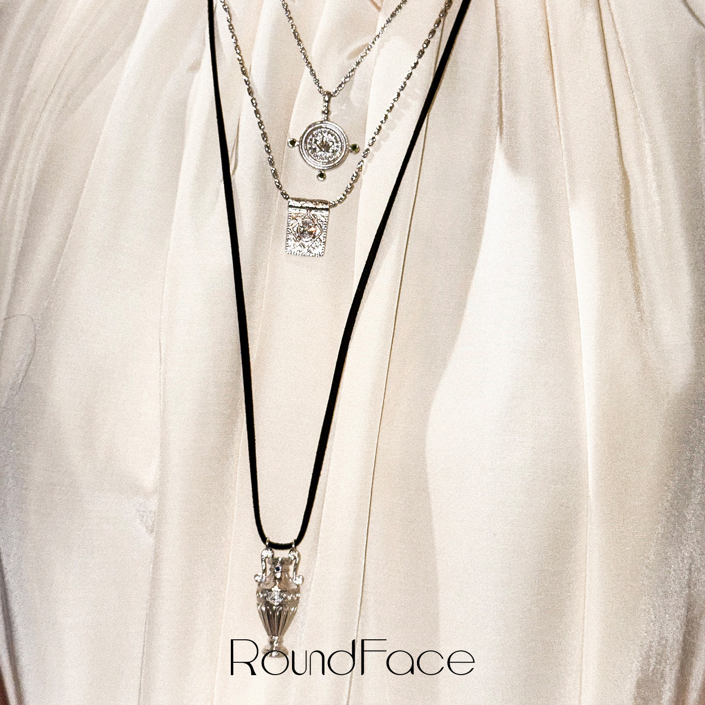 RoundFace 2026ss系列原创设计高级感银质花瓶图案项链复古毛衣链