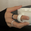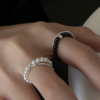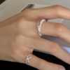 韩版小众叠带珍珠圆珠双层设计感S925纯银时尚INS指环闭口食指戒