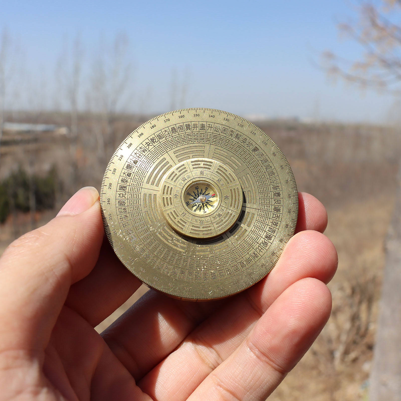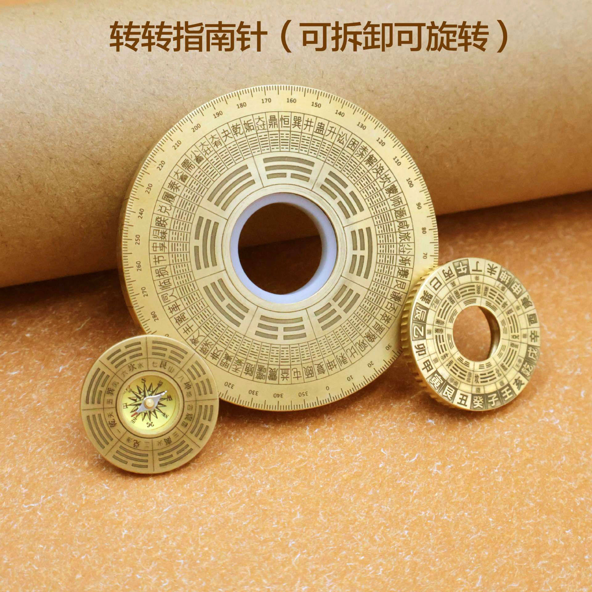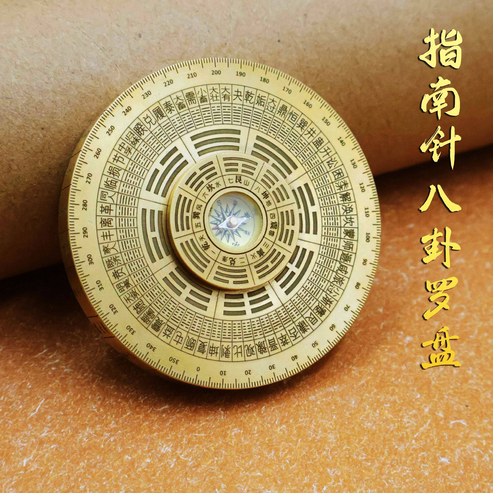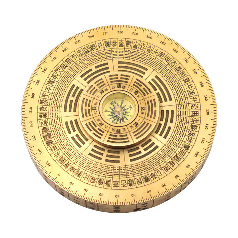 纯铜罗盘玩具指尖陀螺黄小指南针实心八卦轮盘铜手把件工艺