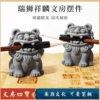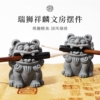 青砂造像衔笔狮麒麟 创意摆件镇纸镇尺毛笔托搁笔架笔搁茶宠文房