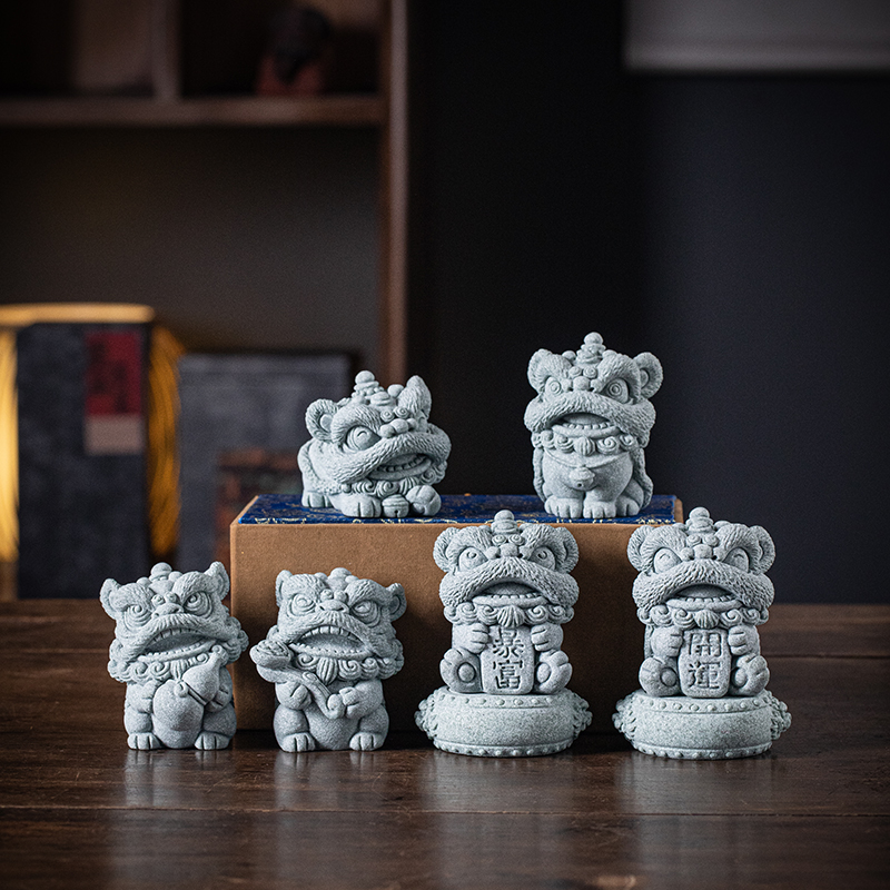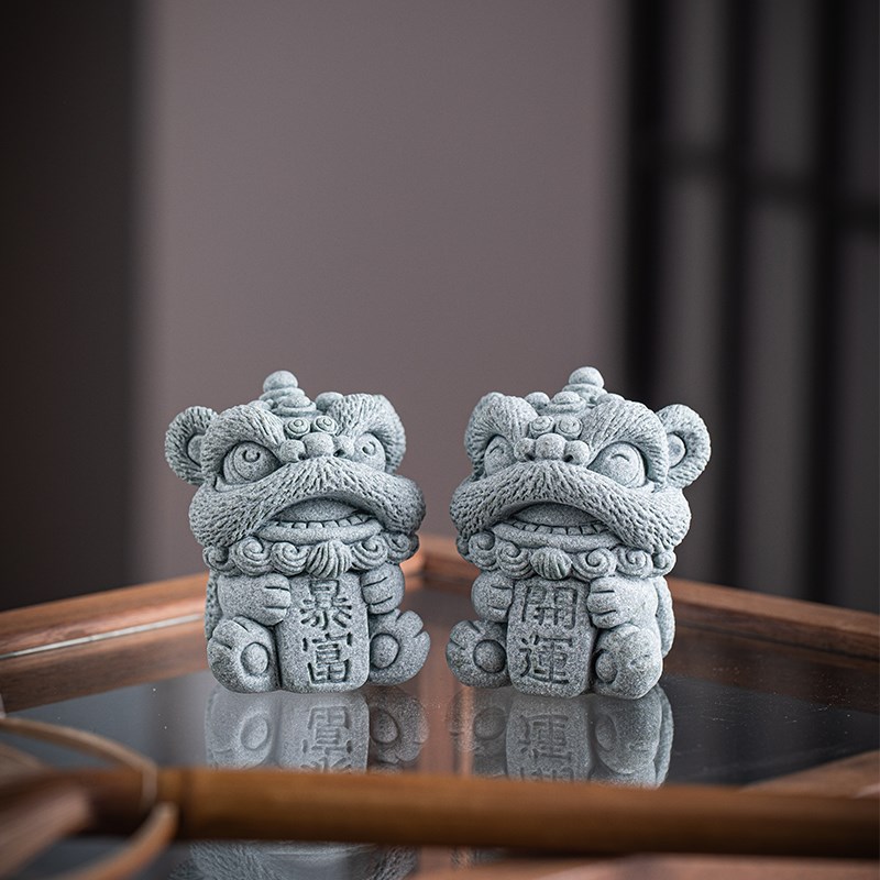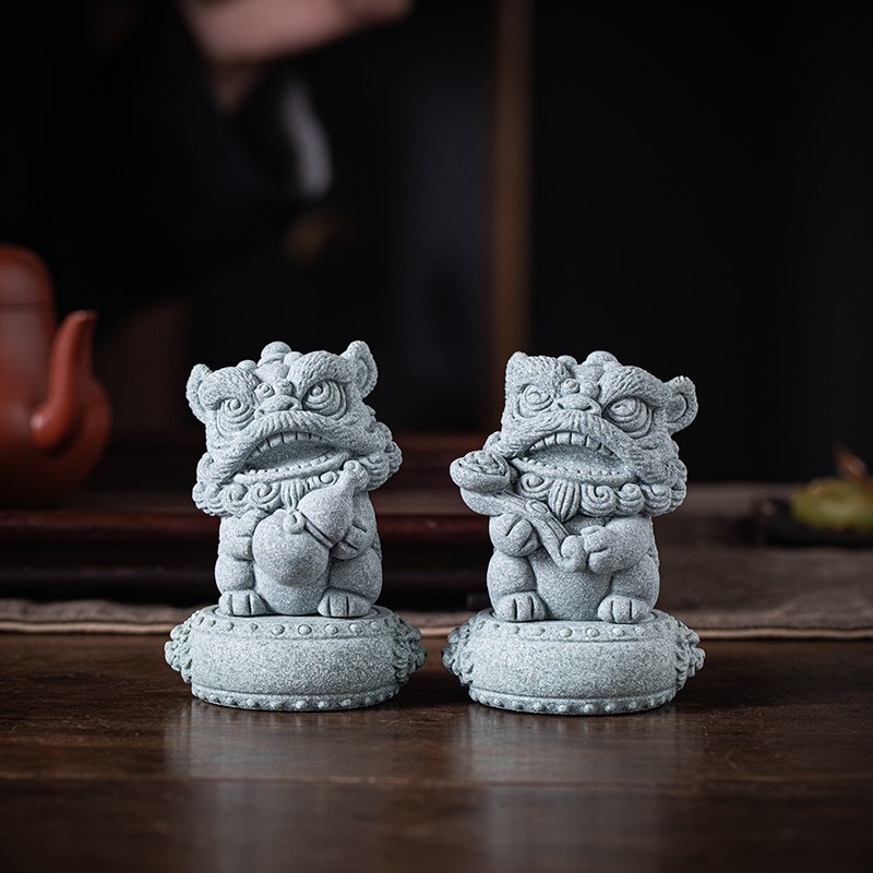 新中式舞狮招财进宝一对茶宠摆件鱼缸造景装饰店铺开业乔迁送礼品