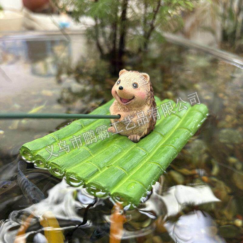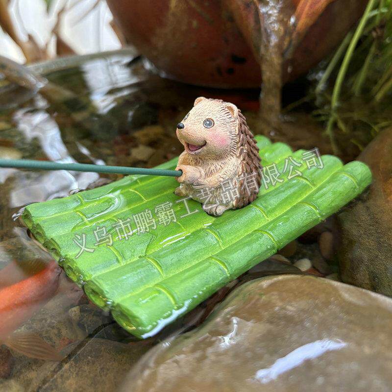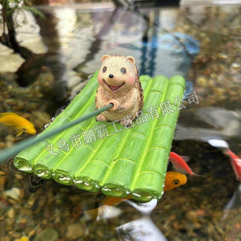 创意刺猬钓鱼摆件花园庭院造景园林假山流水鱼缸水族箱装饰小摆件