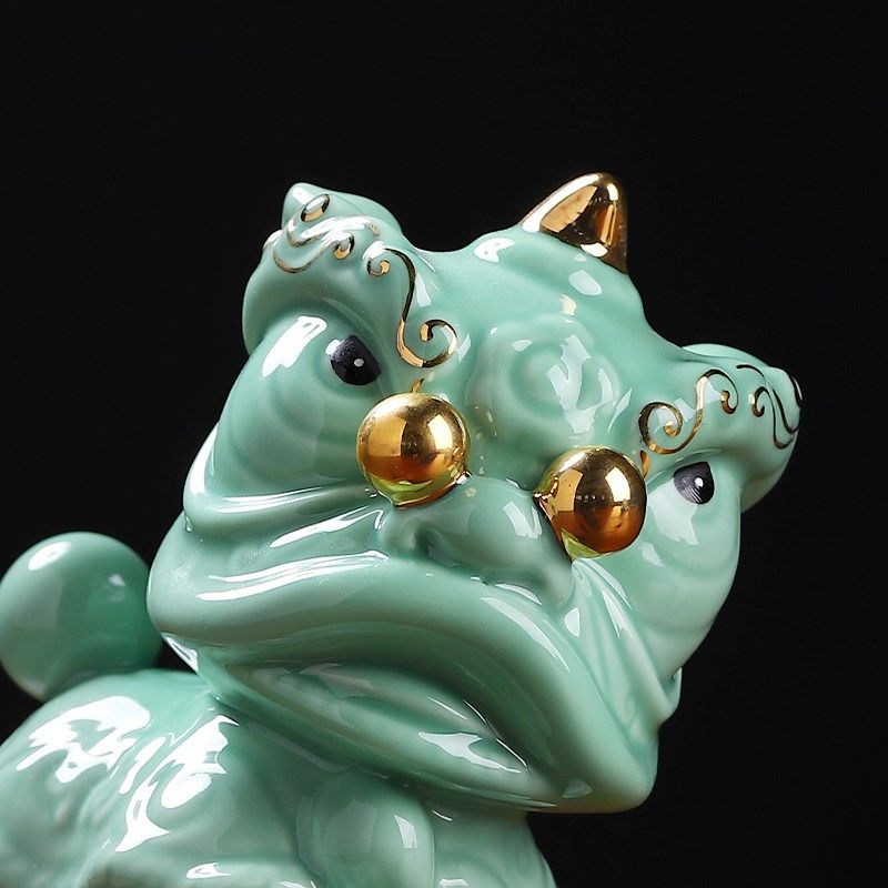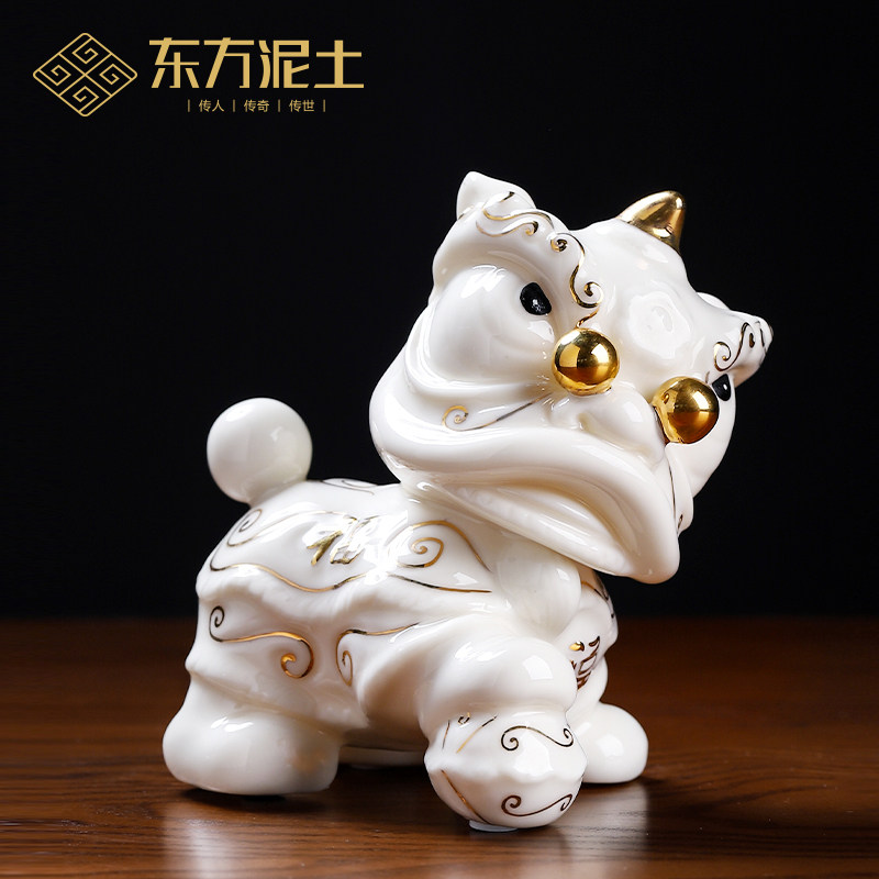 东方泥土陶瓷狮头舞狮子高档摆件客厅电视柜装饰家居乔迁新居礼品