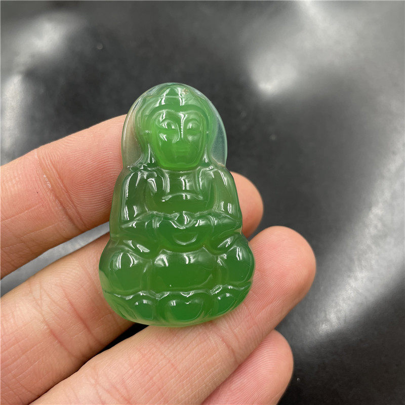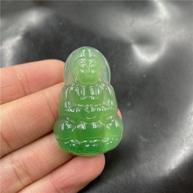 四海玉器 天然绿玉髓观音吊坠 女款翠绿色玛瑙小佛挂件 玉坠