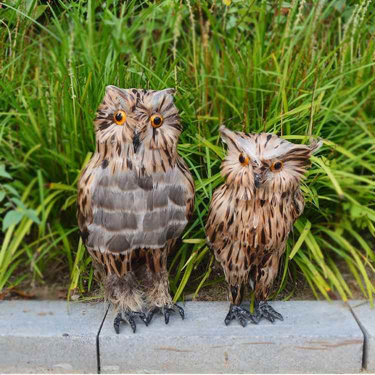 仿真猫头鹰动物模型吓鸟工具真羽毛鸟类饰品摆件庭院超市森林道具