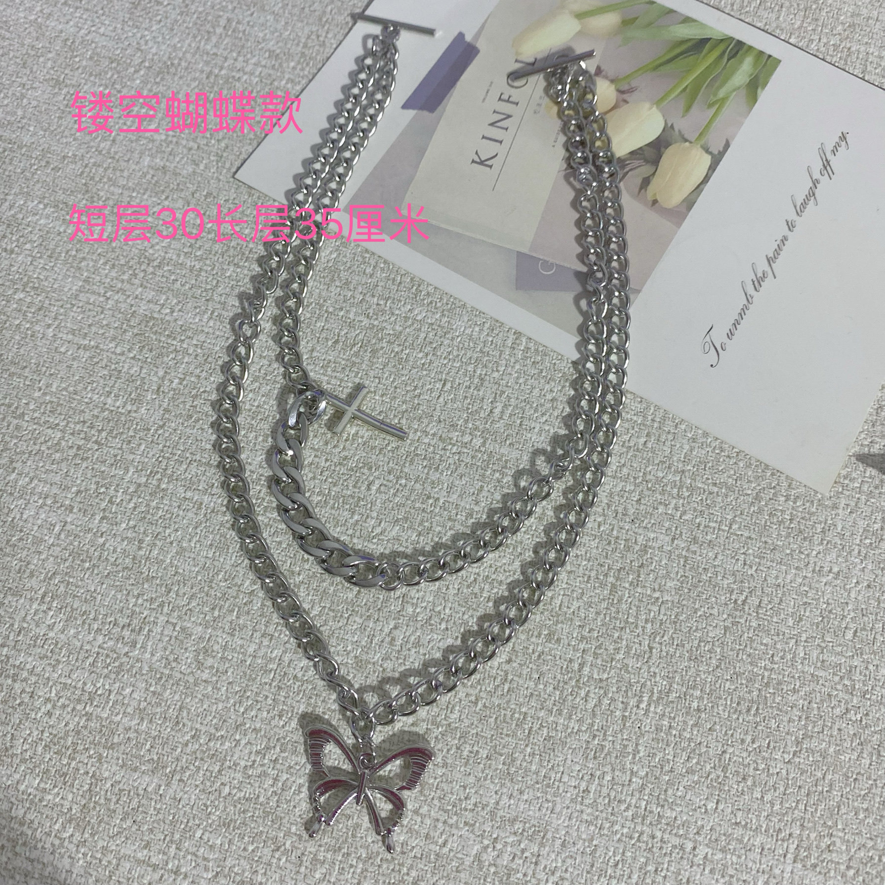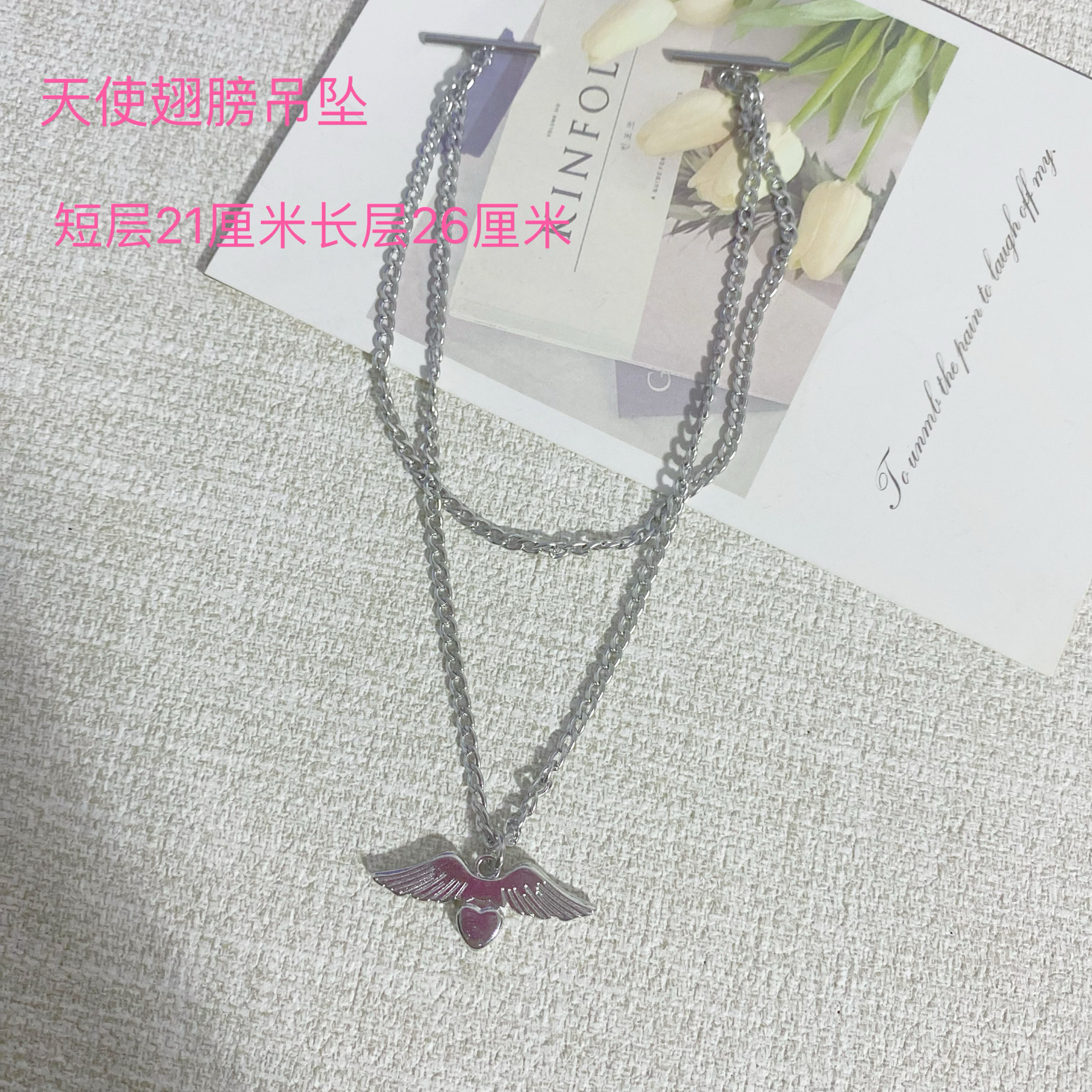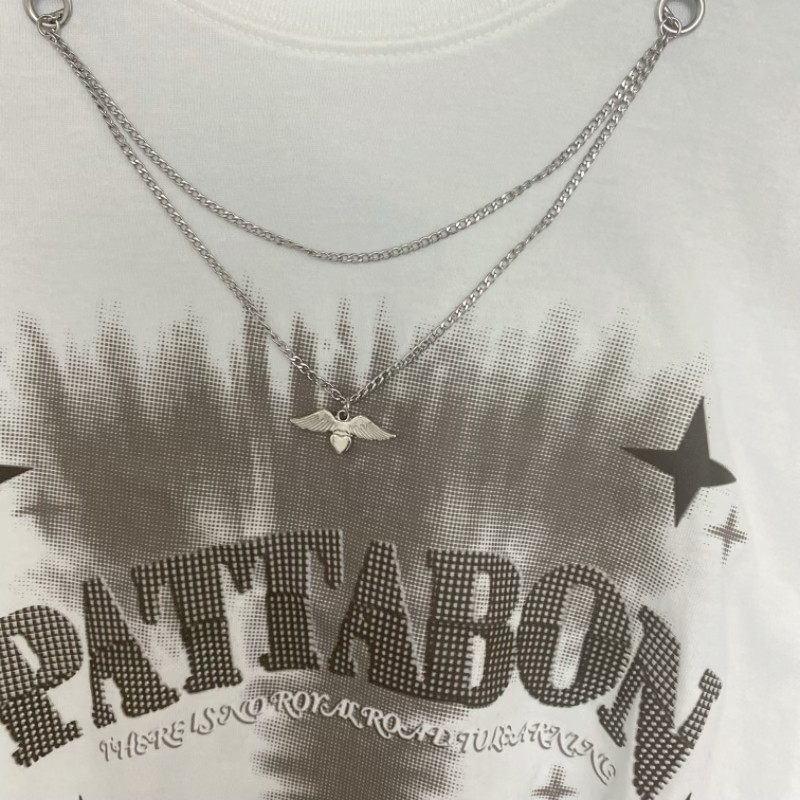 天使翅膀双头领口链条钛钢一字扣项链可拆卸分离式领口链男女情侣