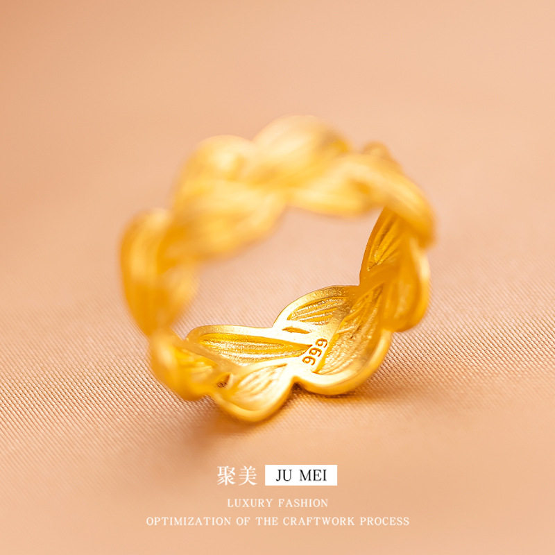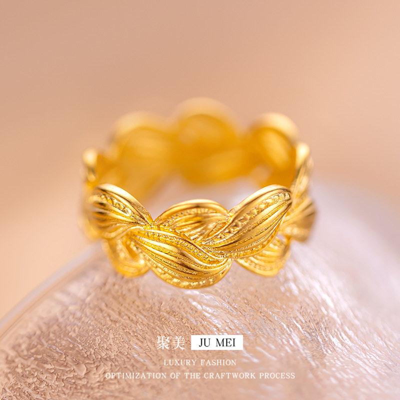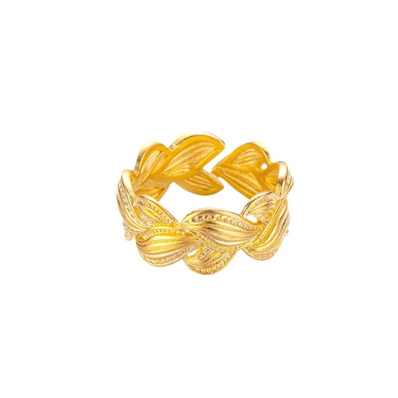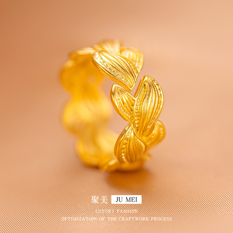 新中式越南沙金风吹麦浪活口指环交织花纹古法麦穗仿真金色指环