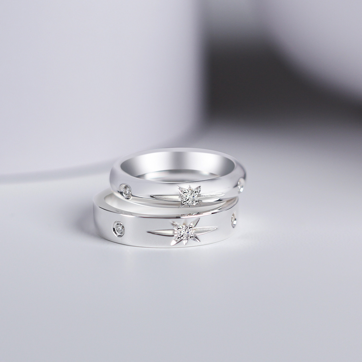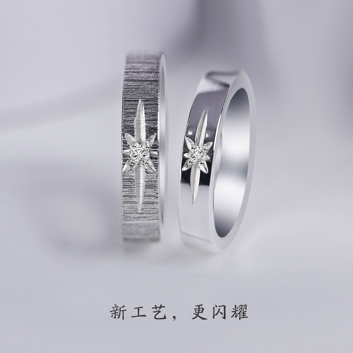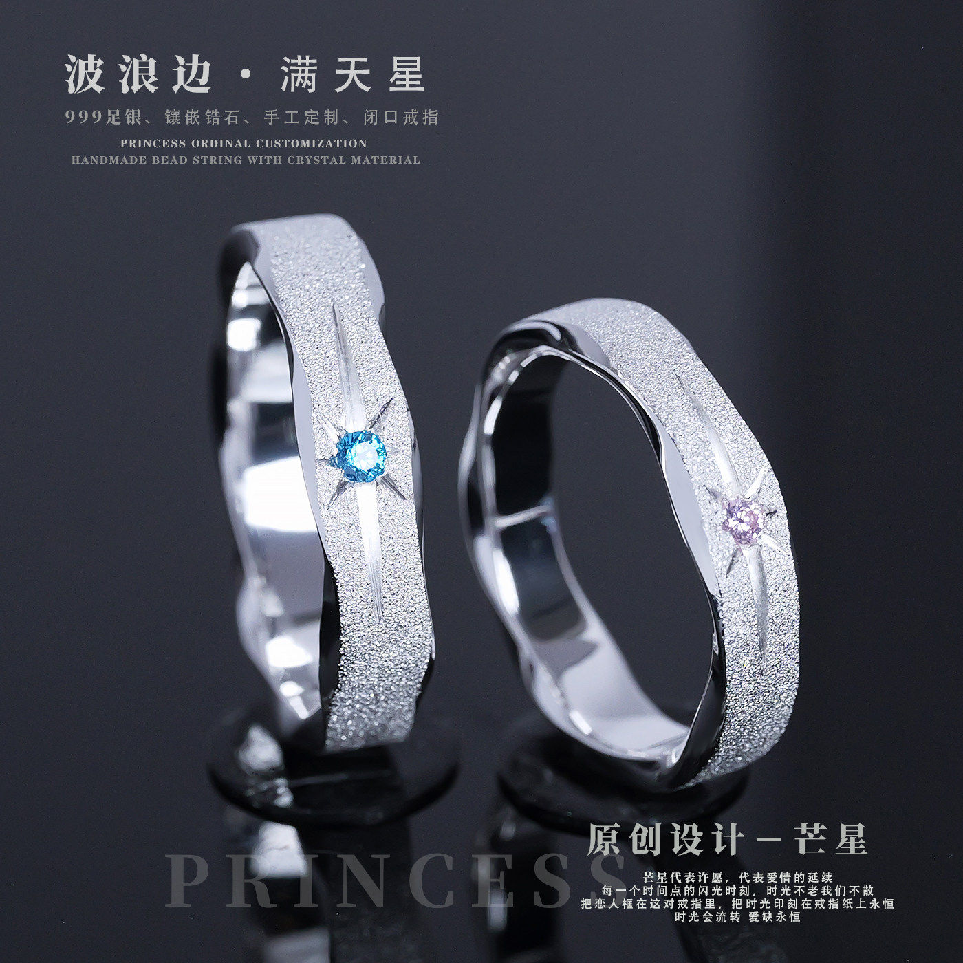 princess原创999纯银八芒星情侣对戒定制闭口情侣戒指小众520礼物