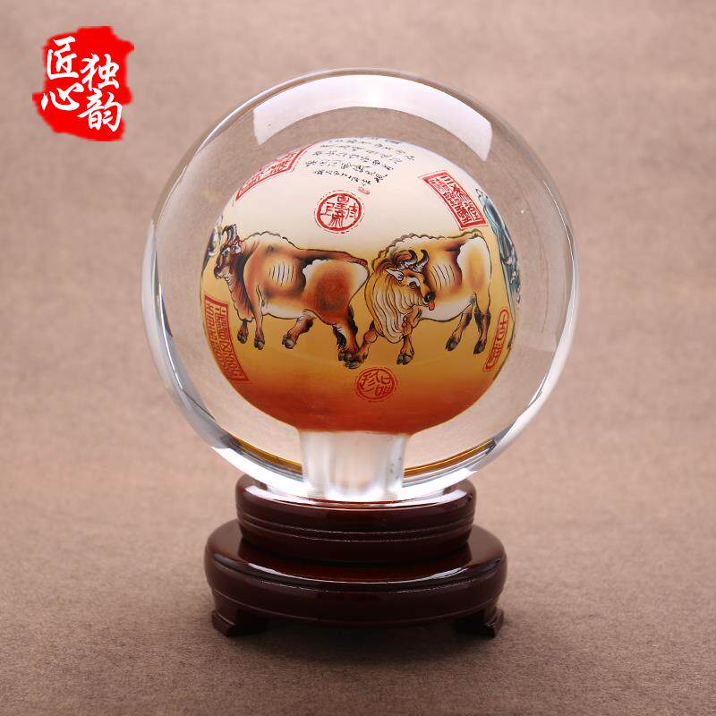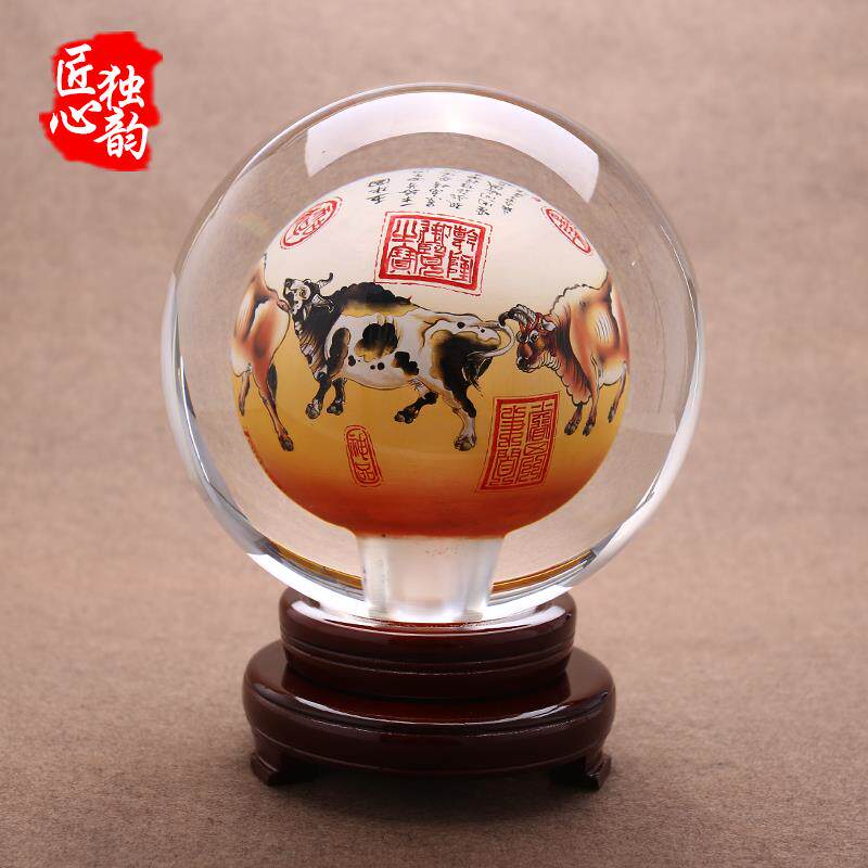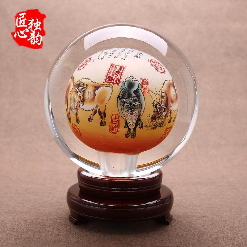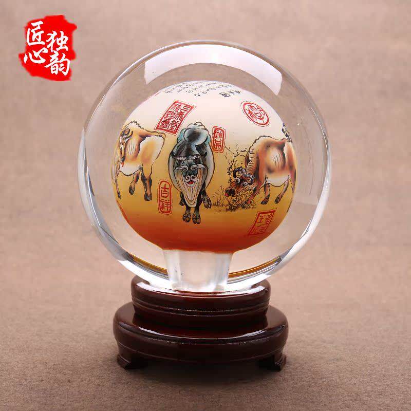 高档五办牛图牛年摆件创意礼中国风内画球领送导特色公品室桌面