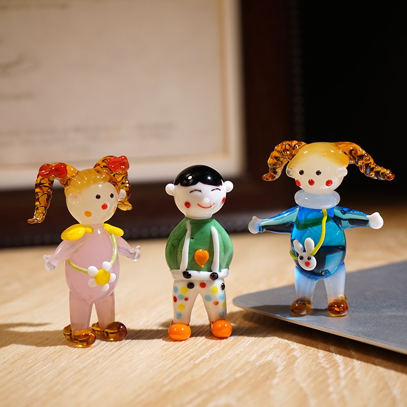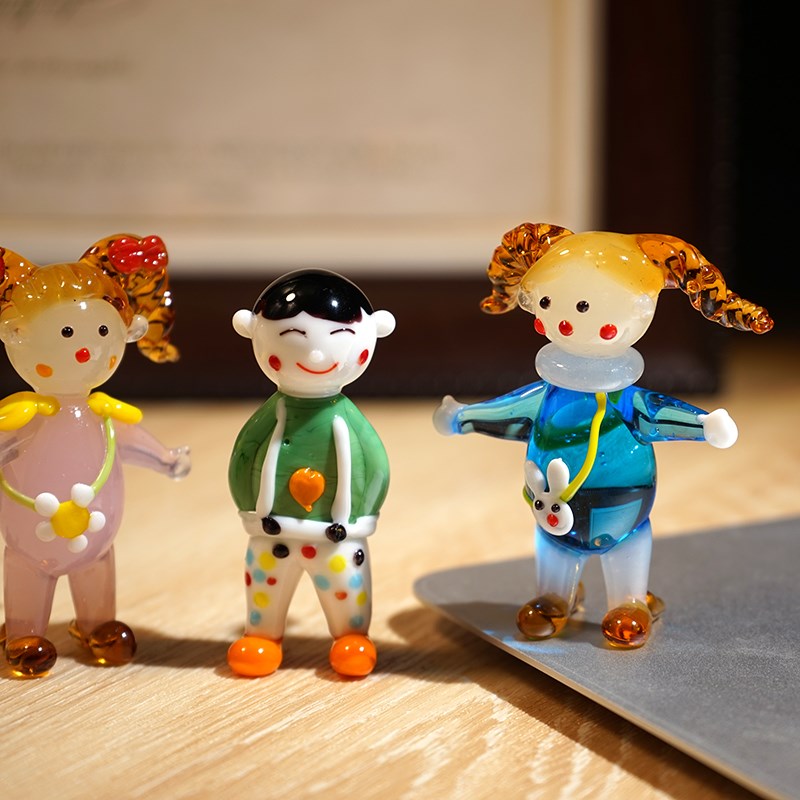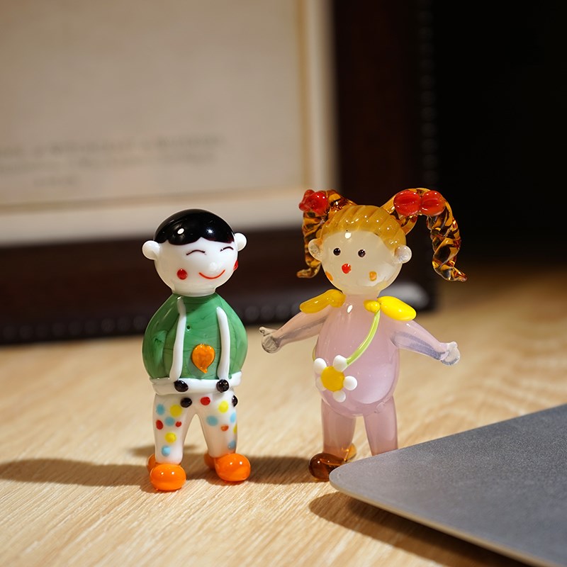 男女孩手工玻璃小摆件琉璃办公室电脑书柜桌面装饰工艺品公仔