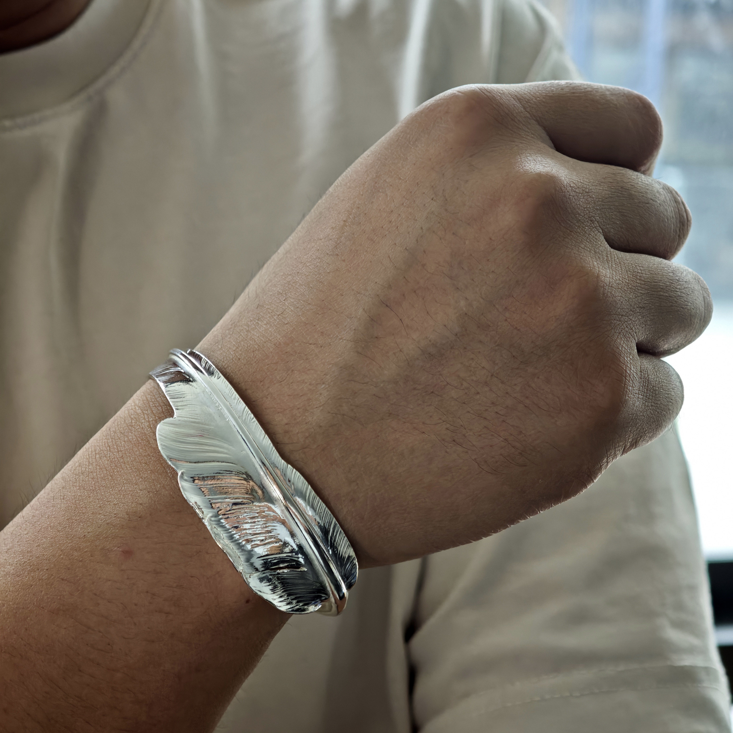 铁头的店925银LarrySmith拉瑞斯密斯印第安风格大号风切羽毛手镯