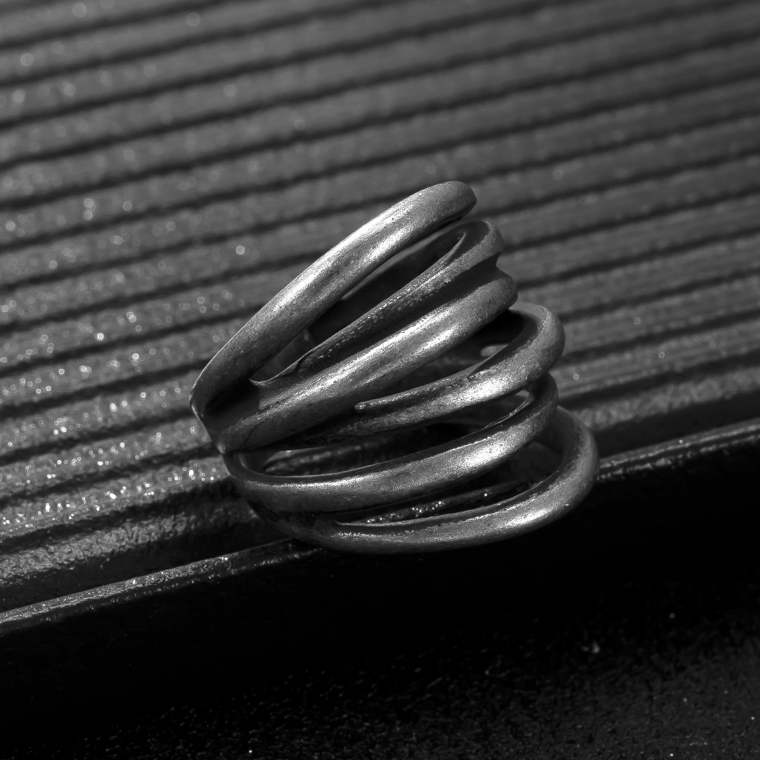 欧美跨境新款男士戒指镂空抹黑油缠绕指环个性复古钛钢饰品批发女