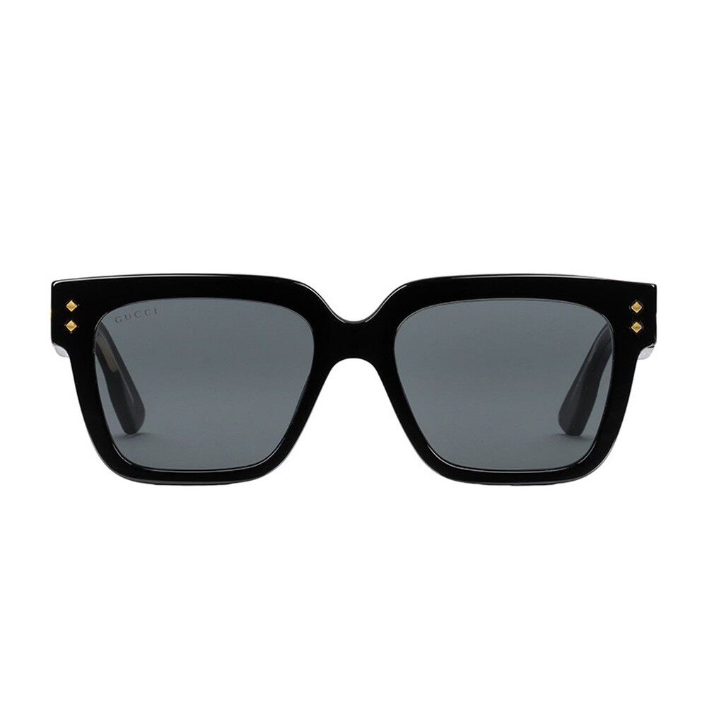 自营GUCCI/古驰 男款 光泽感黑色醋纤长方形镜框搭配铆钉纯灰色