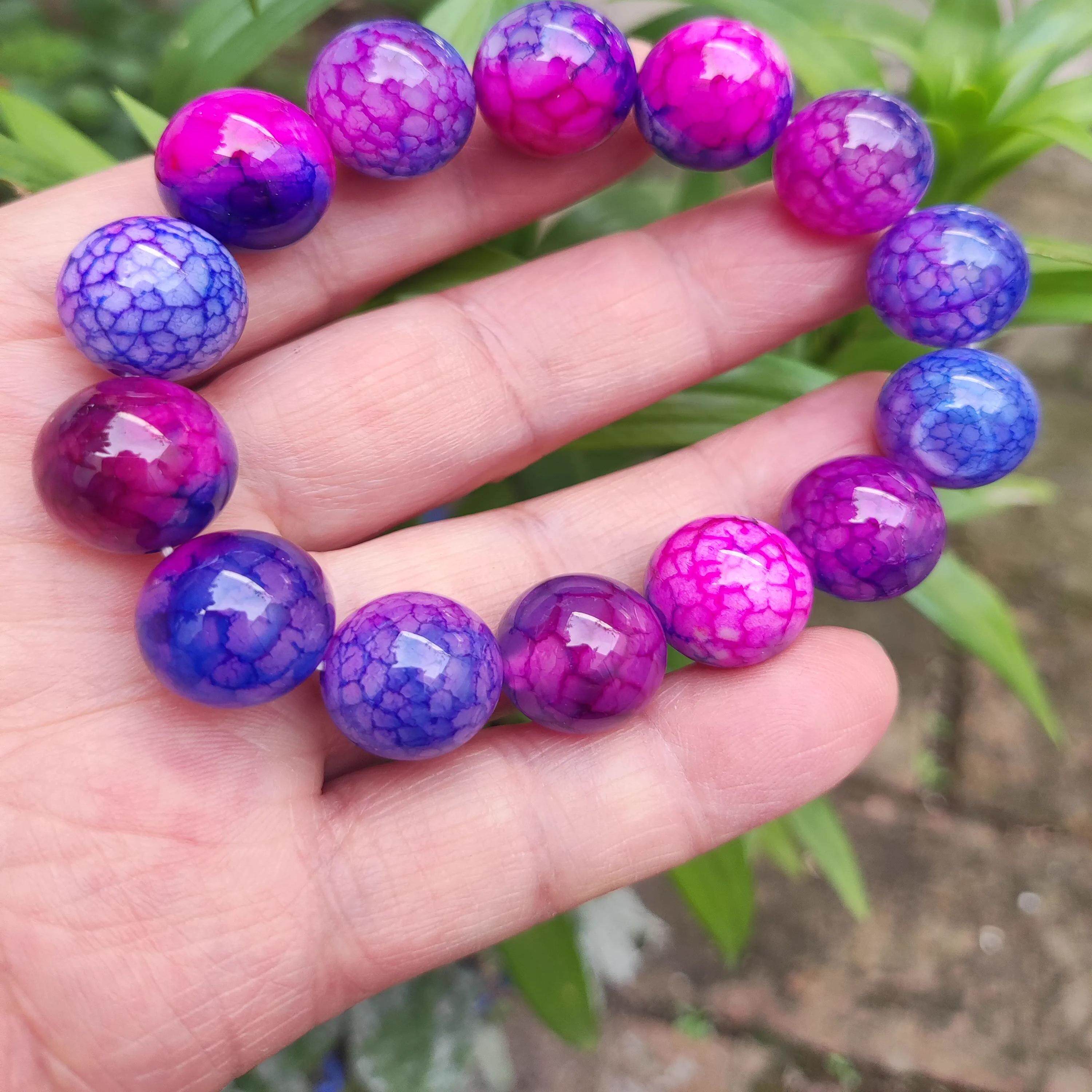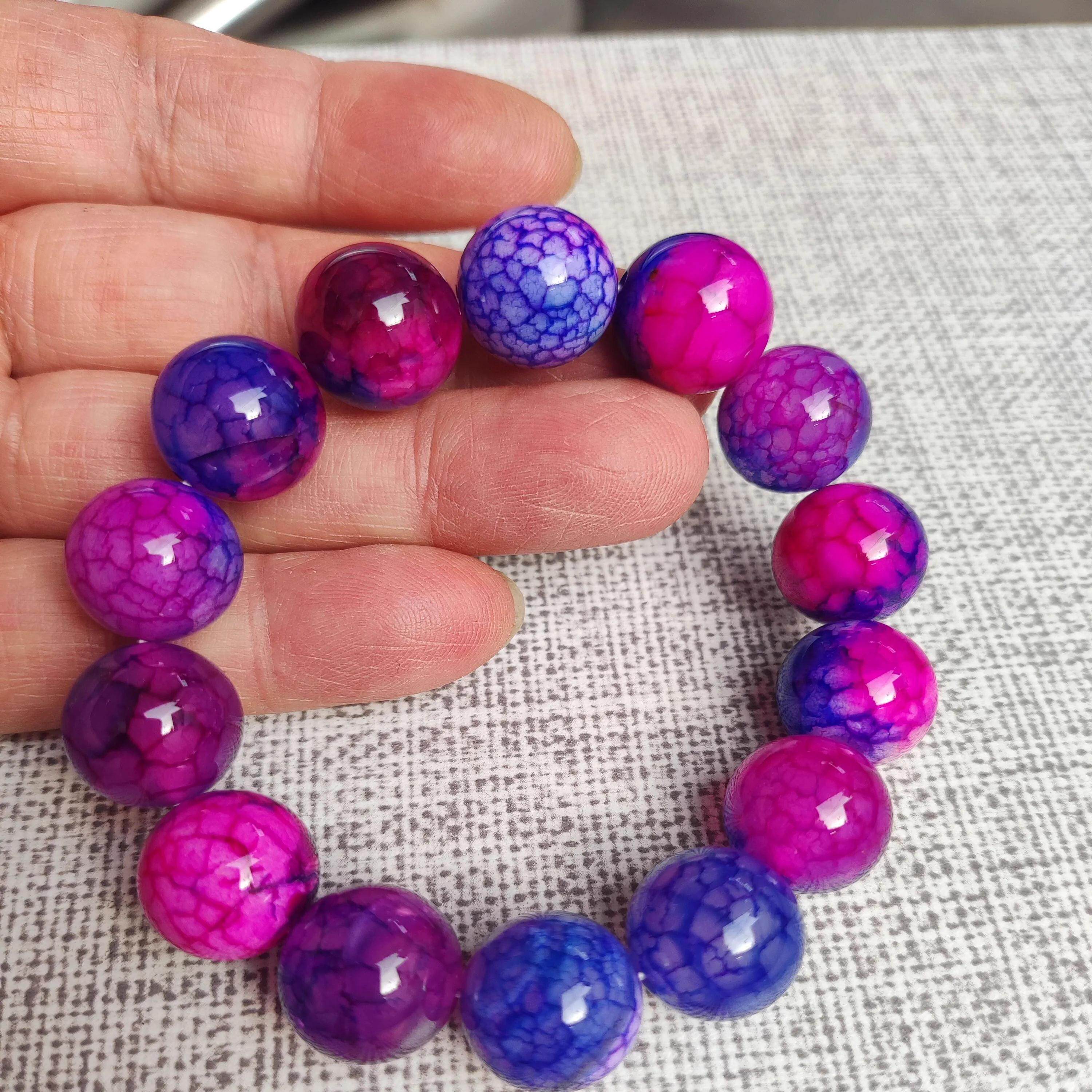 贵族珍品紫色龙鳞凤血玛瑙圆珠女款高档血丝冰更冰裂手串网红手链