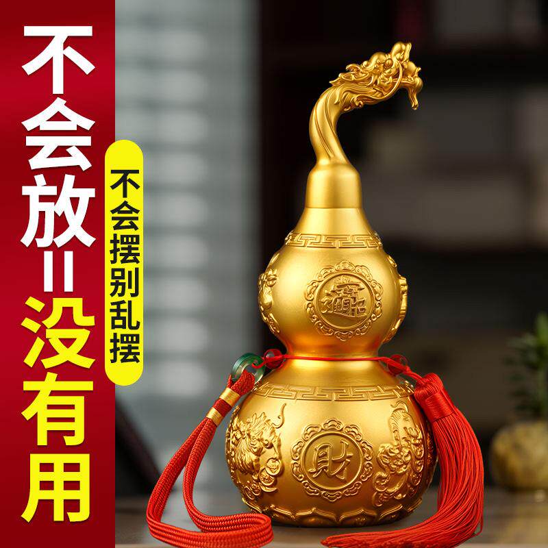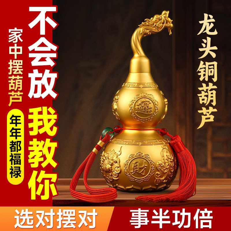 带龙头的铜葫芦开口挂件全真空心纯金属黄色胡卢解宅客厅招财摆件