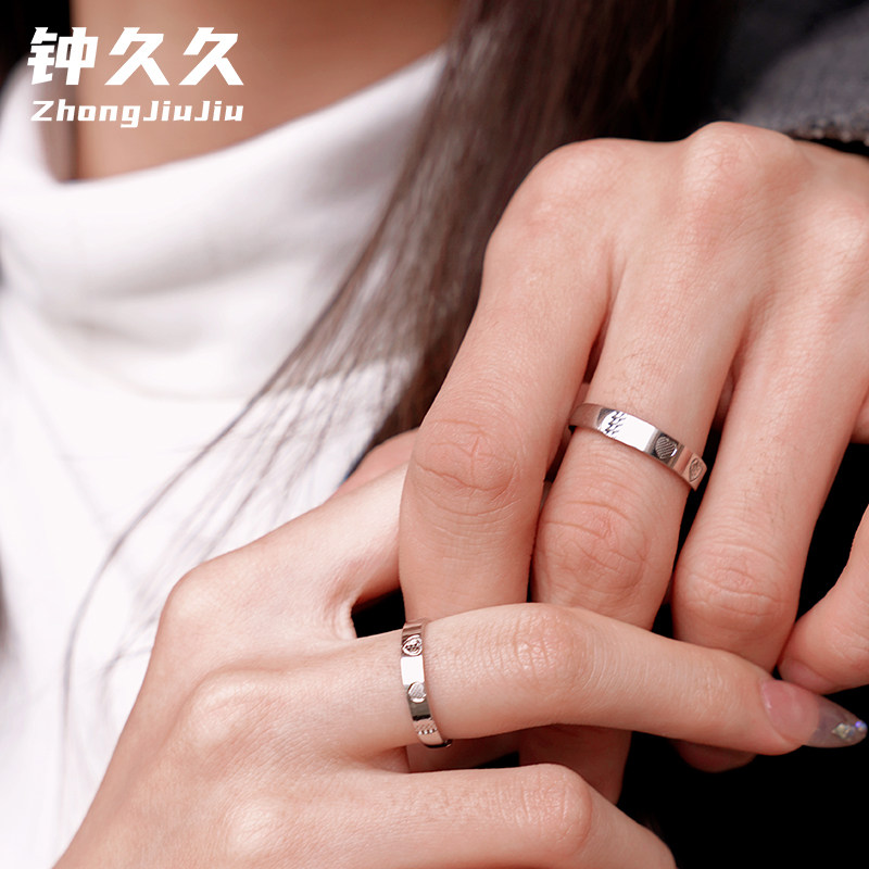 钟久久情侣对戒心动纯银戒指送女友异地恋爱纪念礼物定制钟爱协议