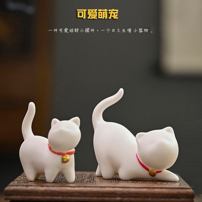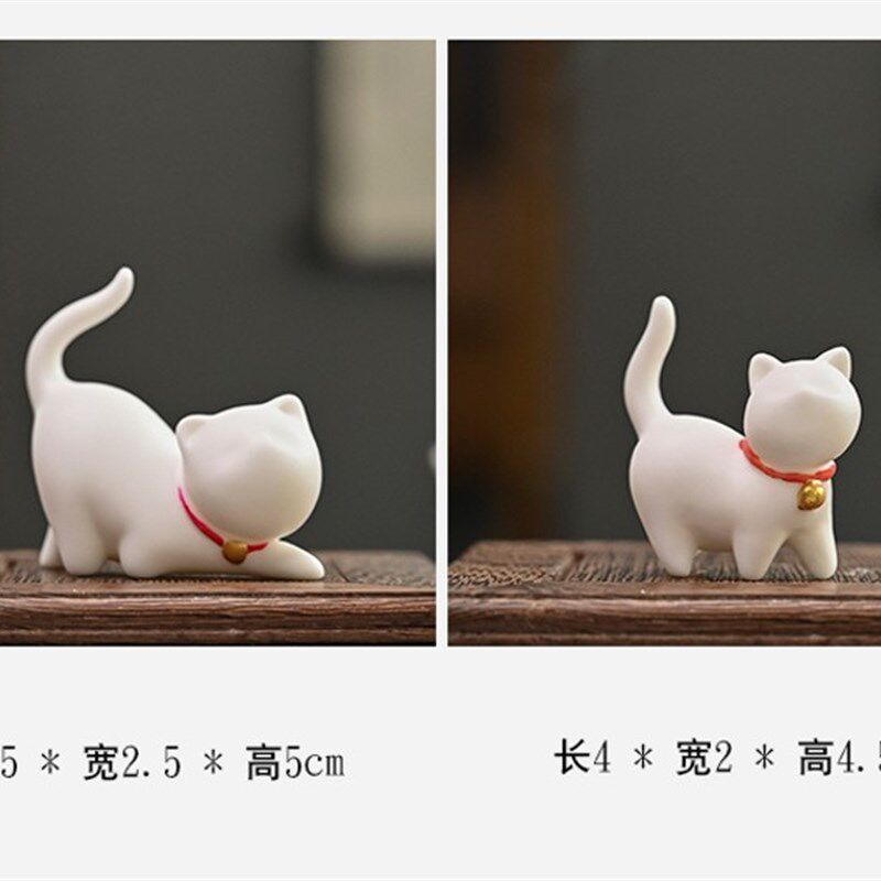 创意陶瓷可爱萌宠白色小猫咪茶宠茶盘配件陶瓷园艺盆景家居小摆件
