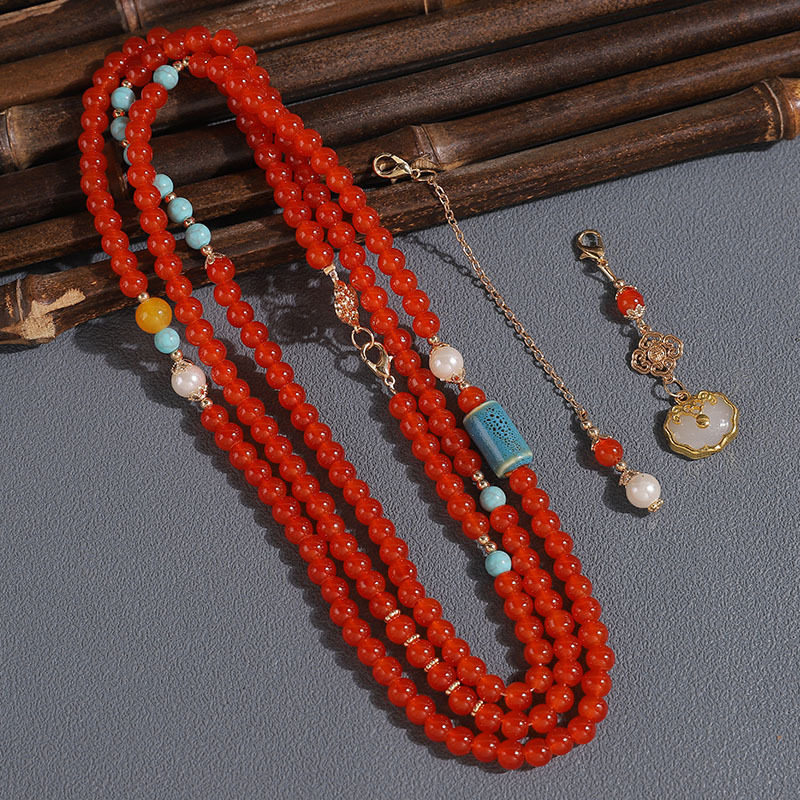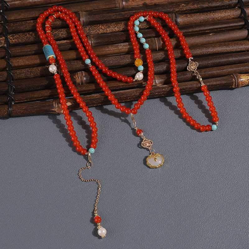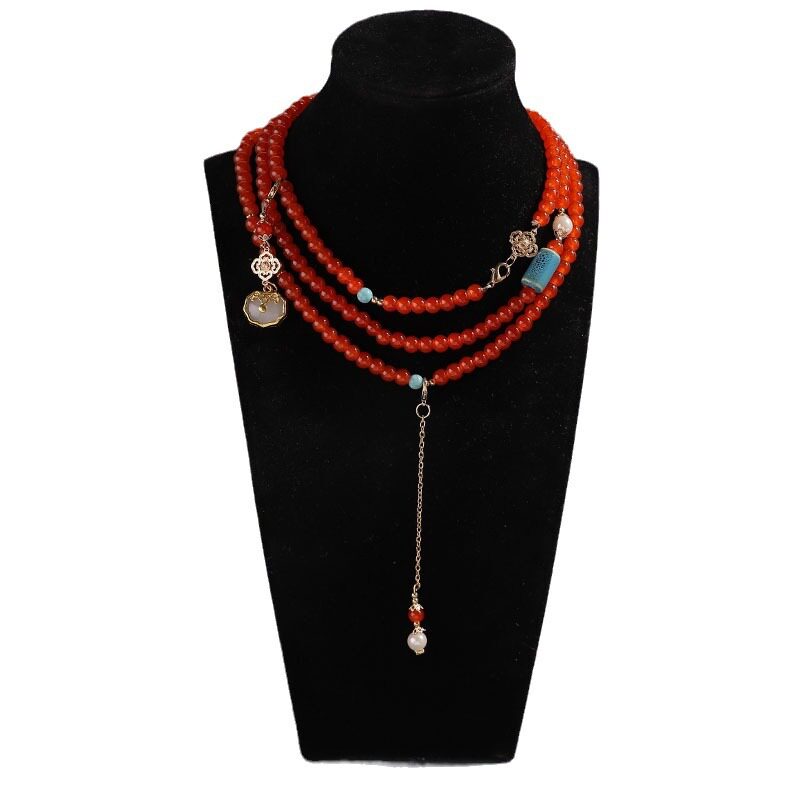 厂家中国风红软璎珞古风超仙背云古风红色加长版斜跨古装项链配饰