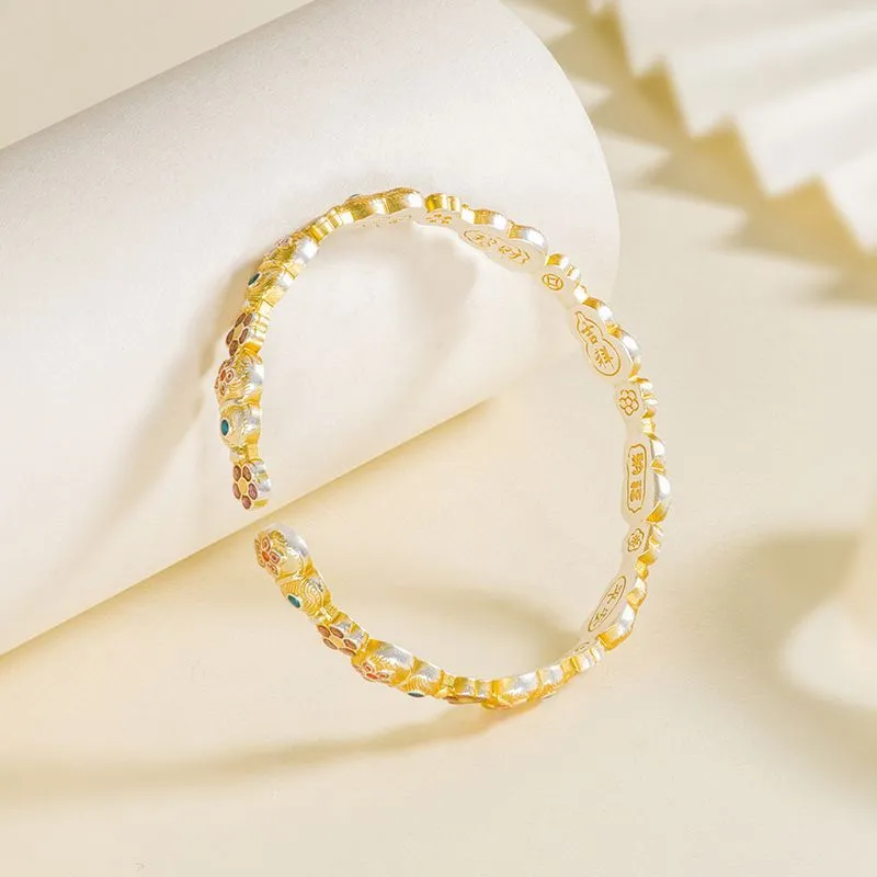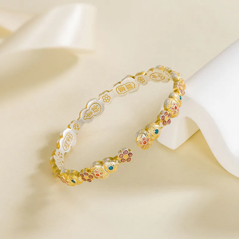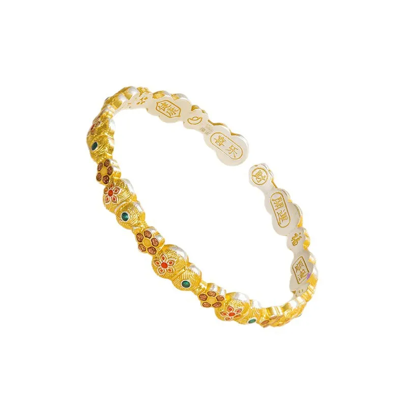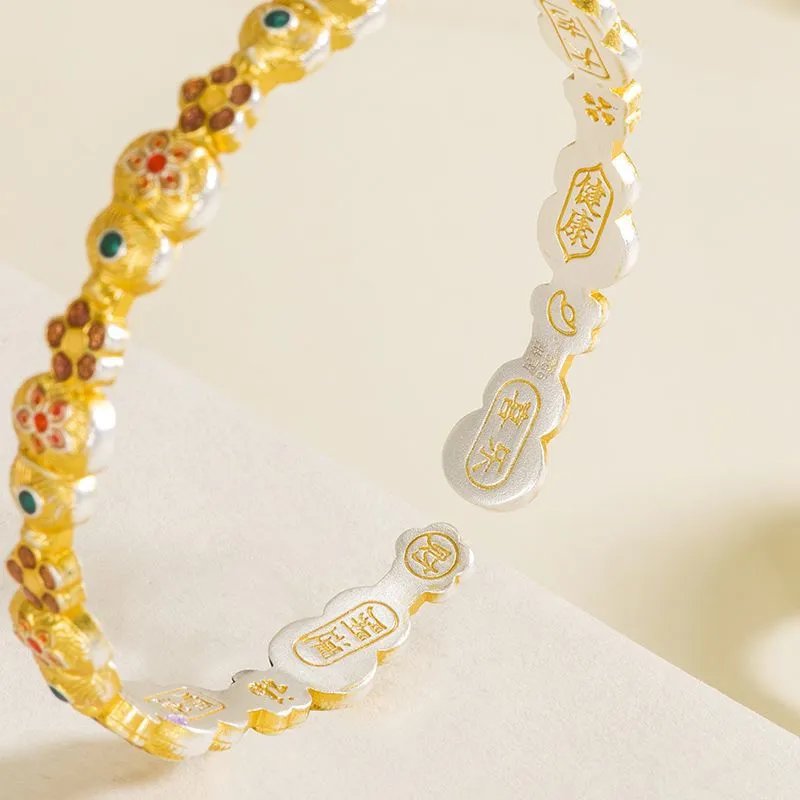 7579号足银999.9描金珐琅实心葫芦宝象花手镯轻奢新中式手镯