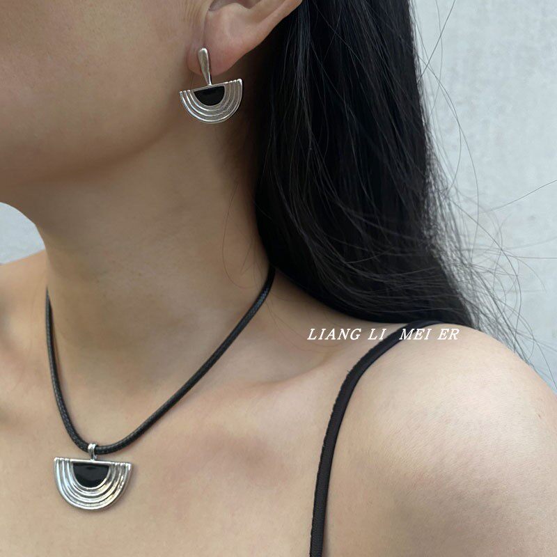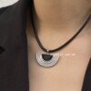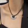 法式复古名族风金属扇形半圆形几何项链个性气质黑色皮绳项圈颈链