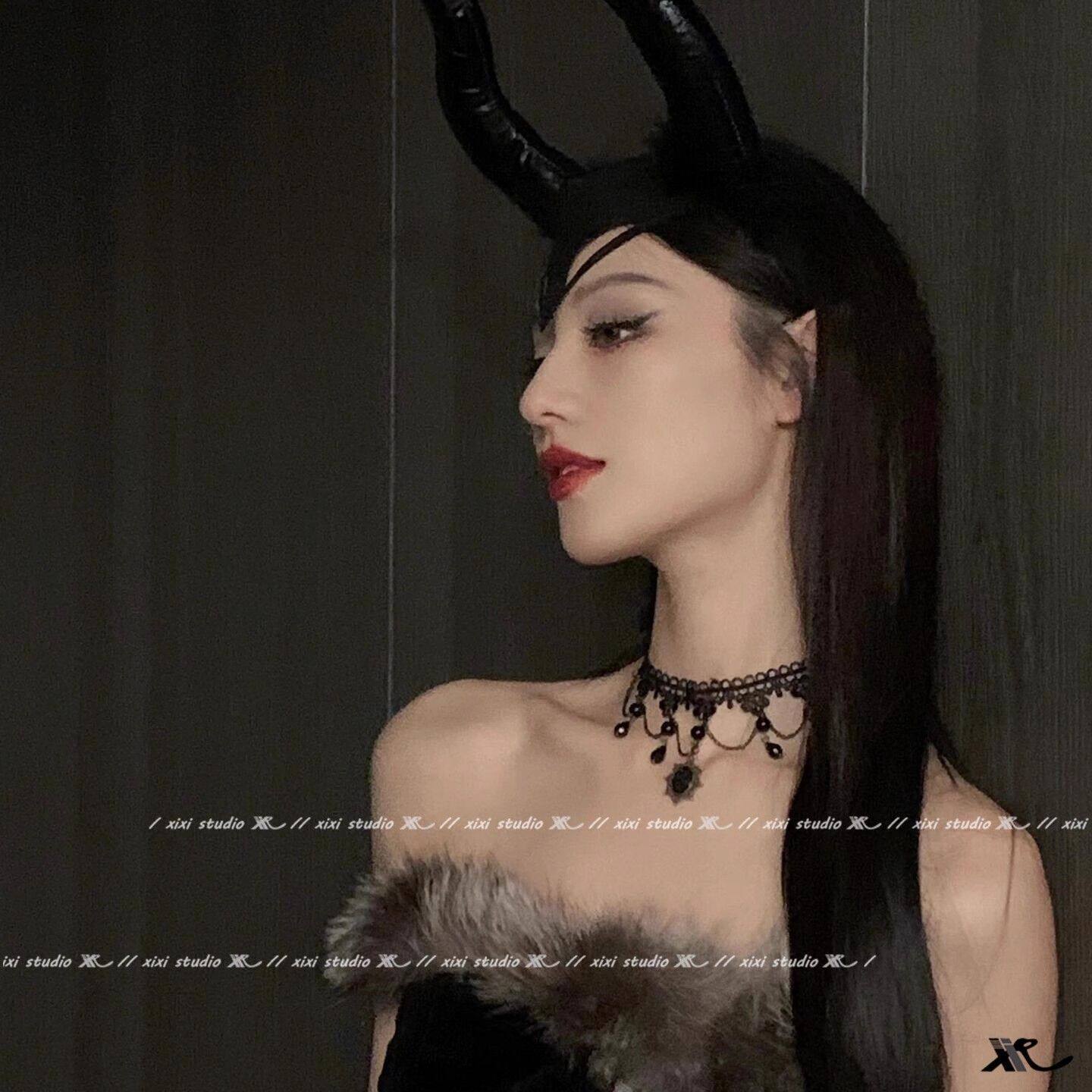 黑色蕾丝项链万圣节吸血鬼装备choker暗黑风锁骨链洛丽塔配饰颈链