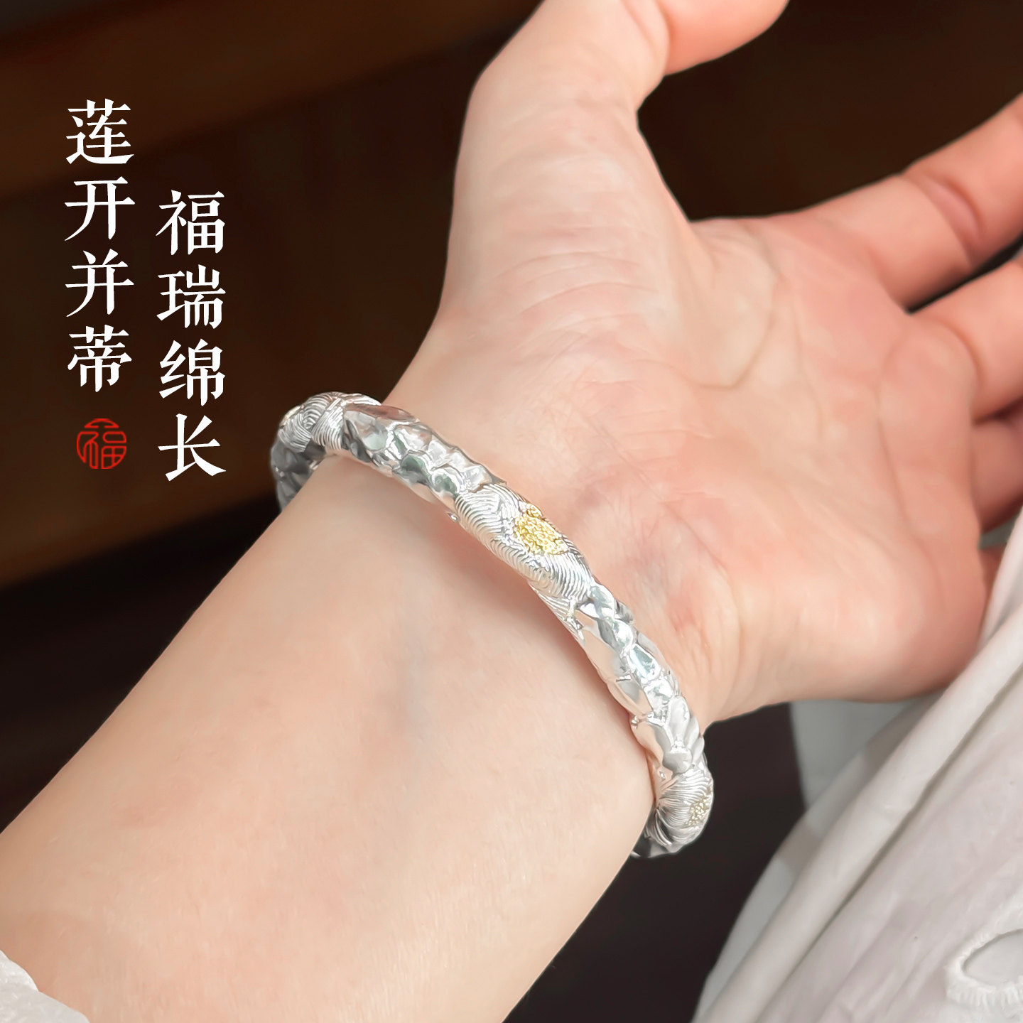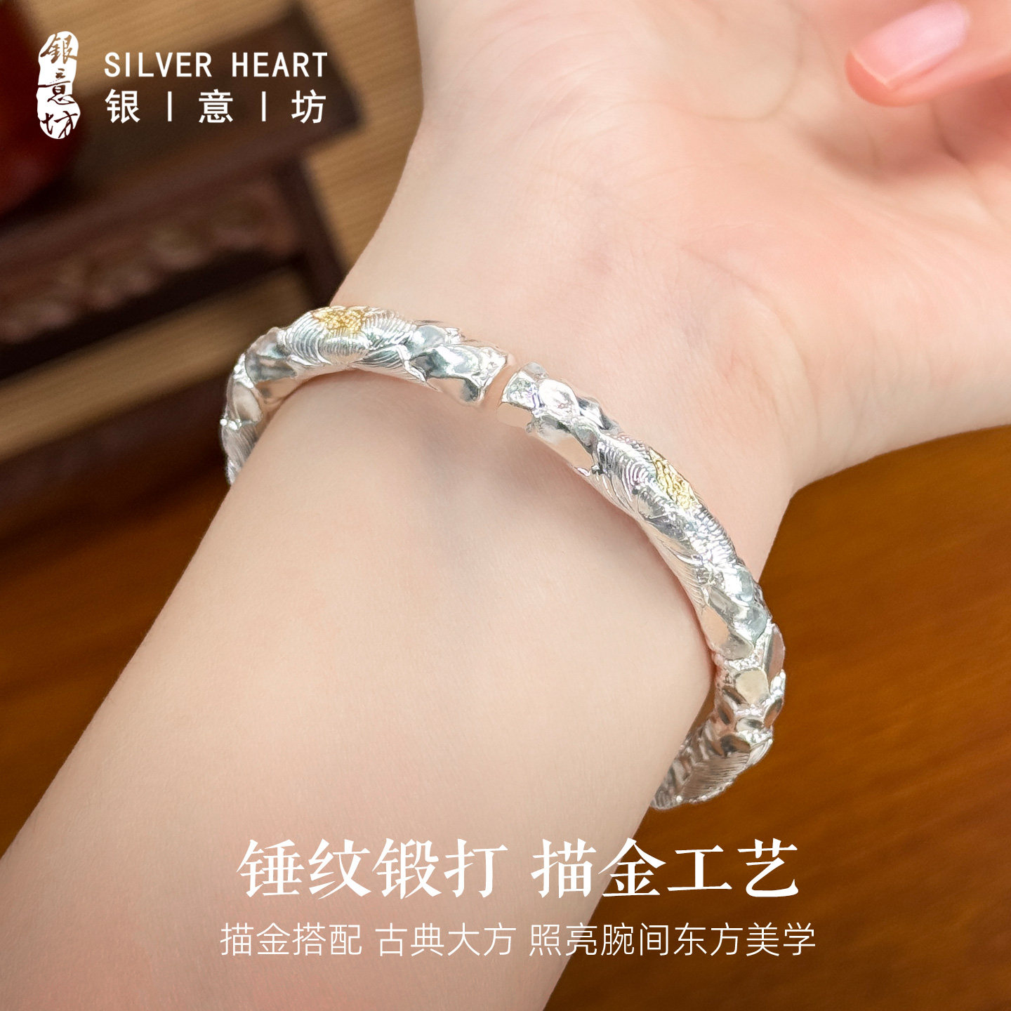 大克重银手镯女9999纯实心款手工古法银镯子送妈妈生日三八节礼物