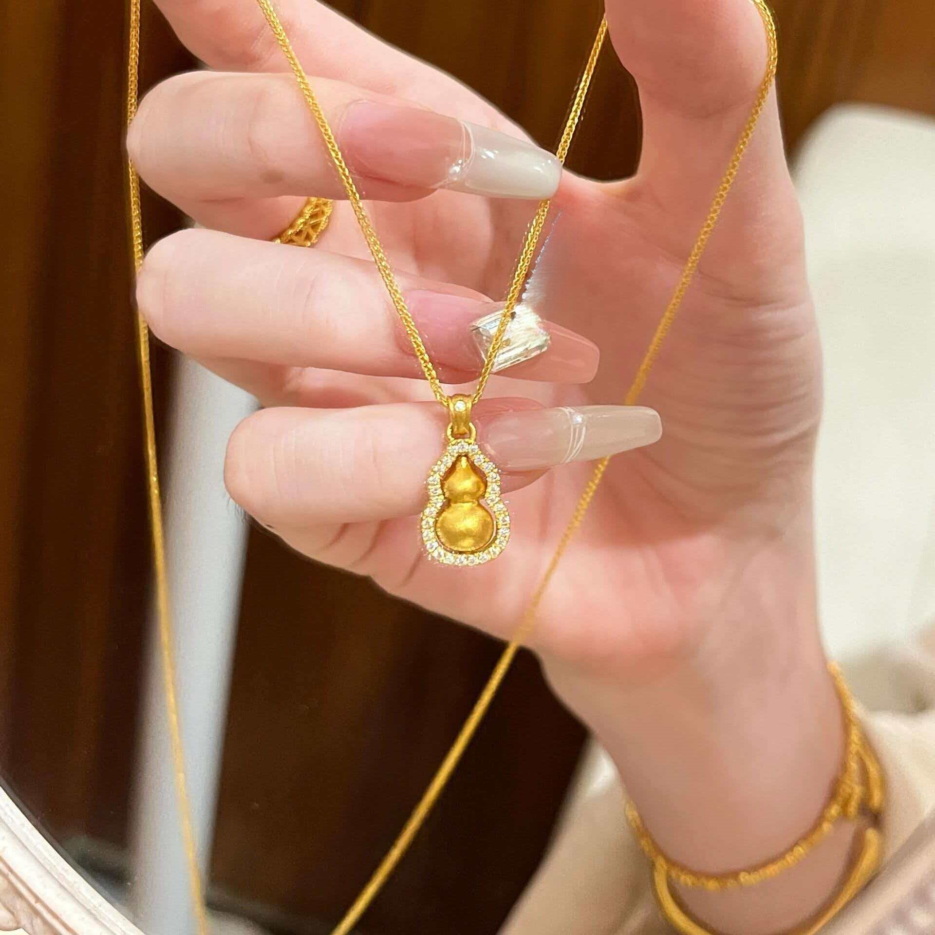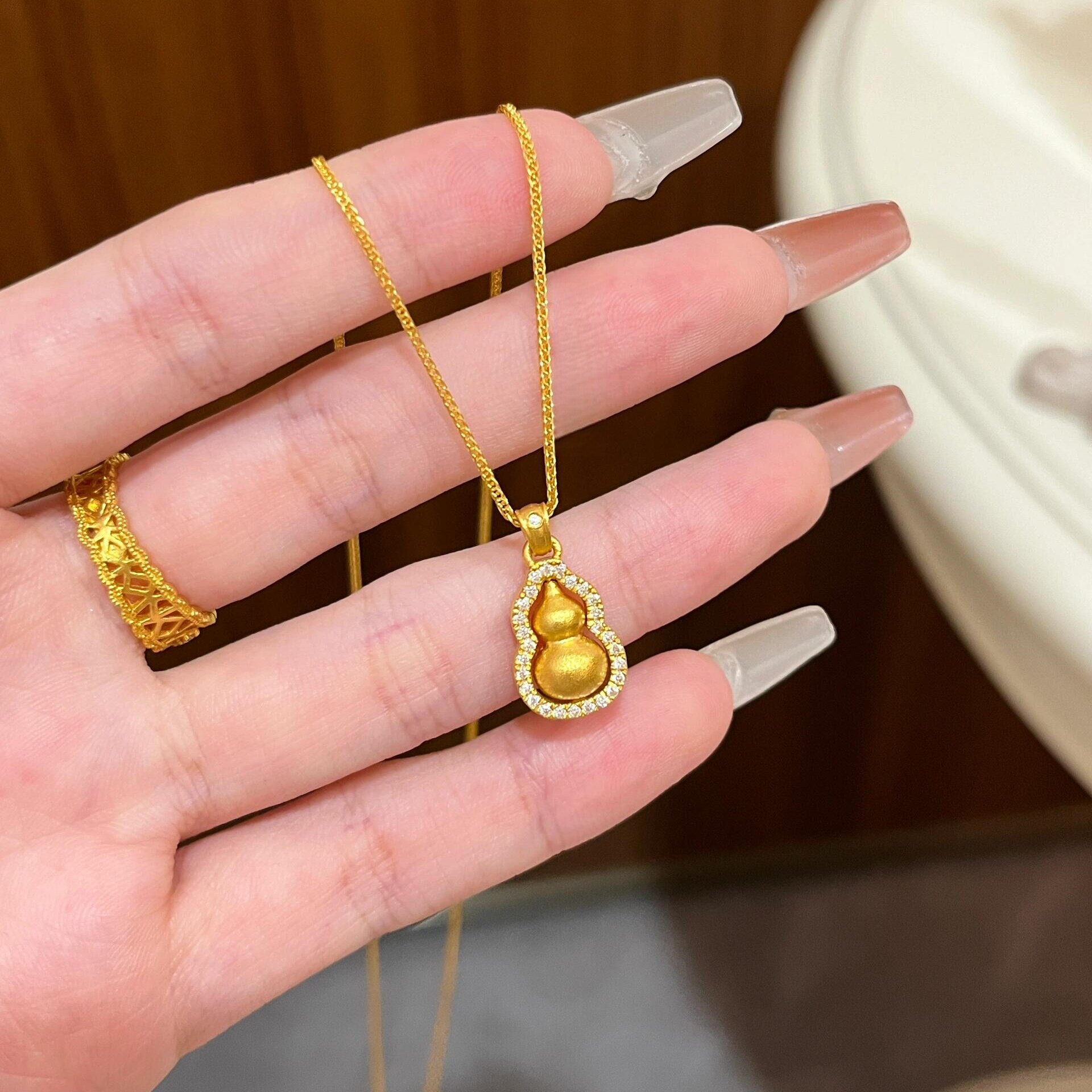 水贝黄金正品金包银旋转葫芦吊坠老铺同款镶钻爆闪项链福禄锁骨链
