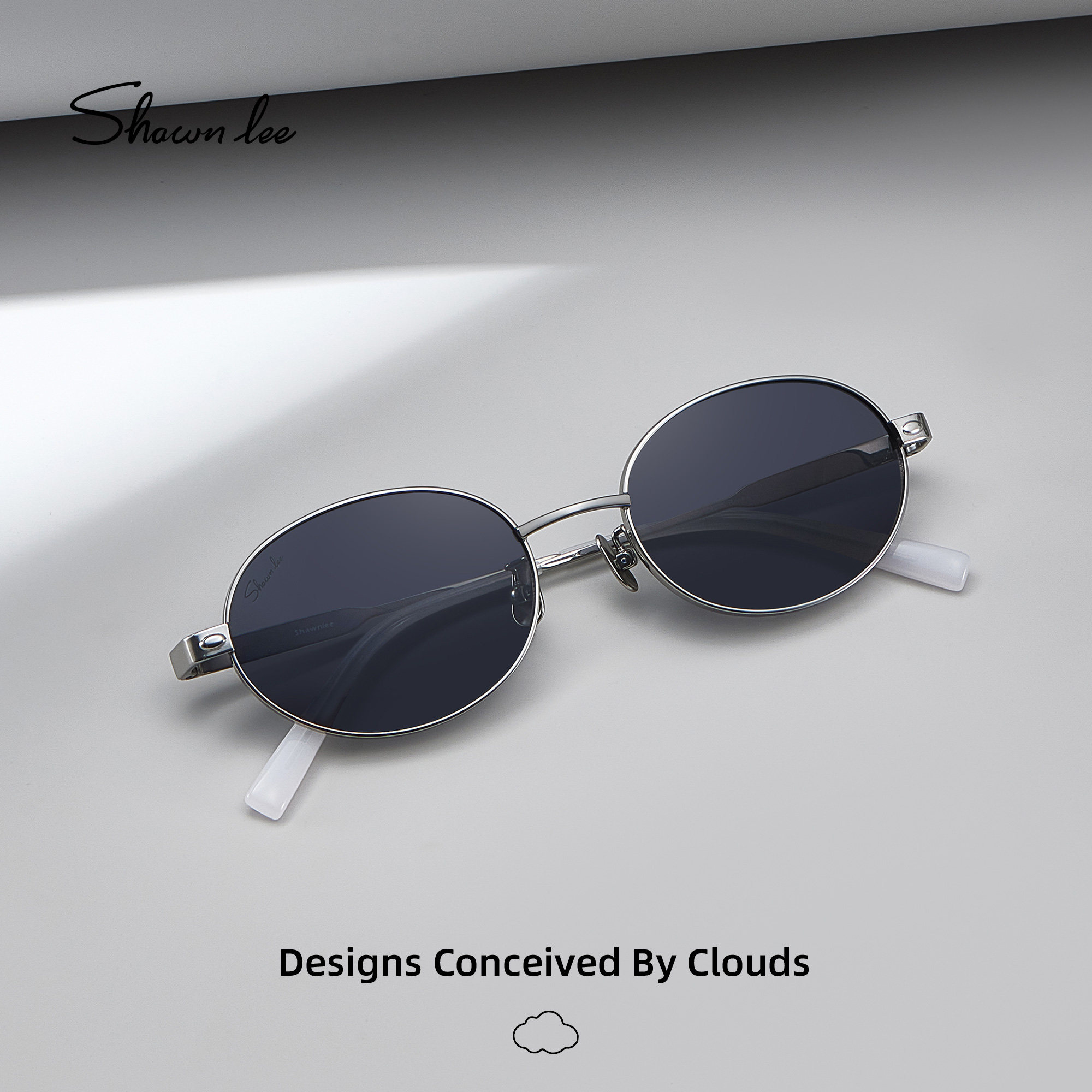 Shawnlee新款椭圆形墨镜女设计感太阳镜复古钛金属防紫外线遮阳镜