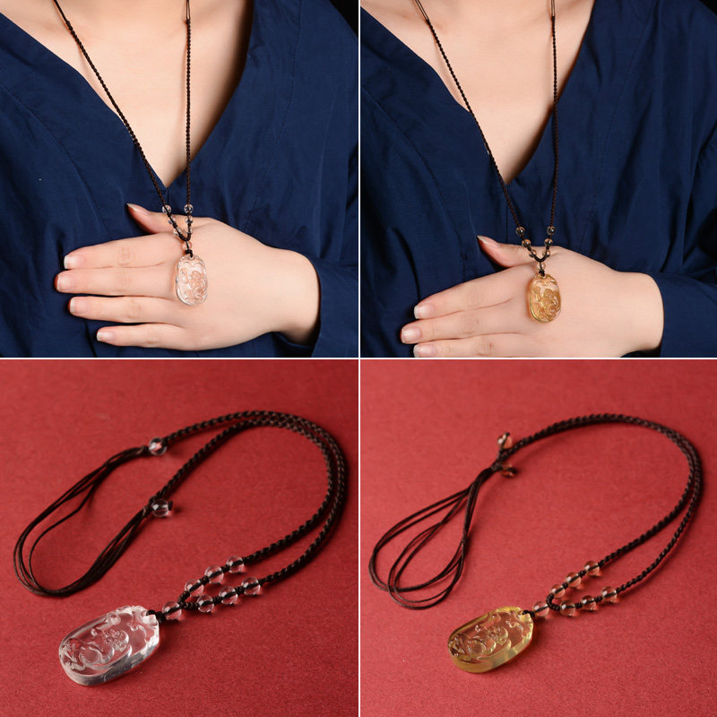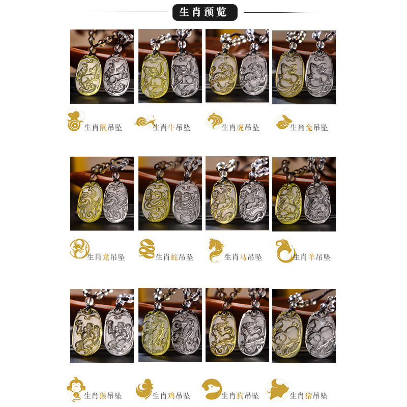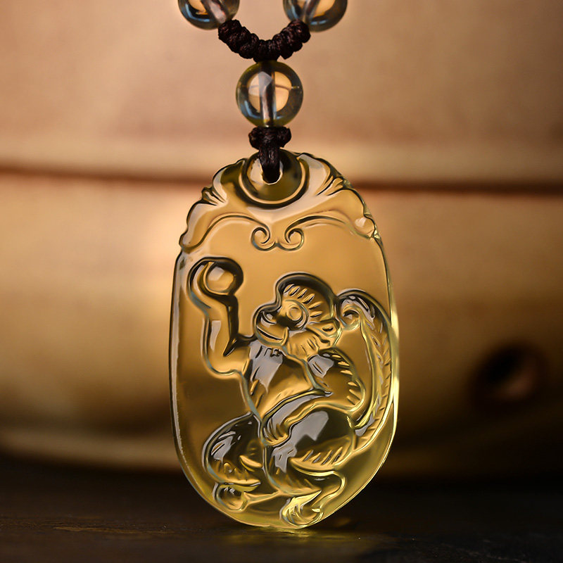 天然黄水晶十二生肖吊坠黄色透明项链猴鼠龙钥匙扣挂件本命年男女