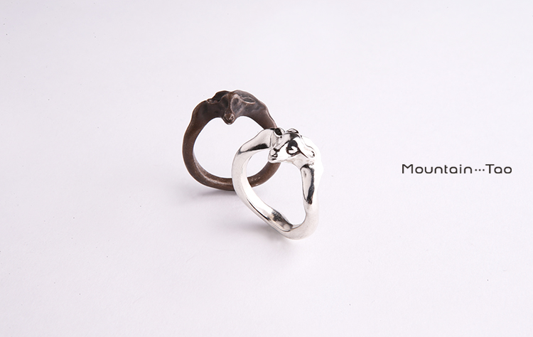 中国设计师山略 原创手工定制 925纯银做旧 朋克范小羊戒指 男戒