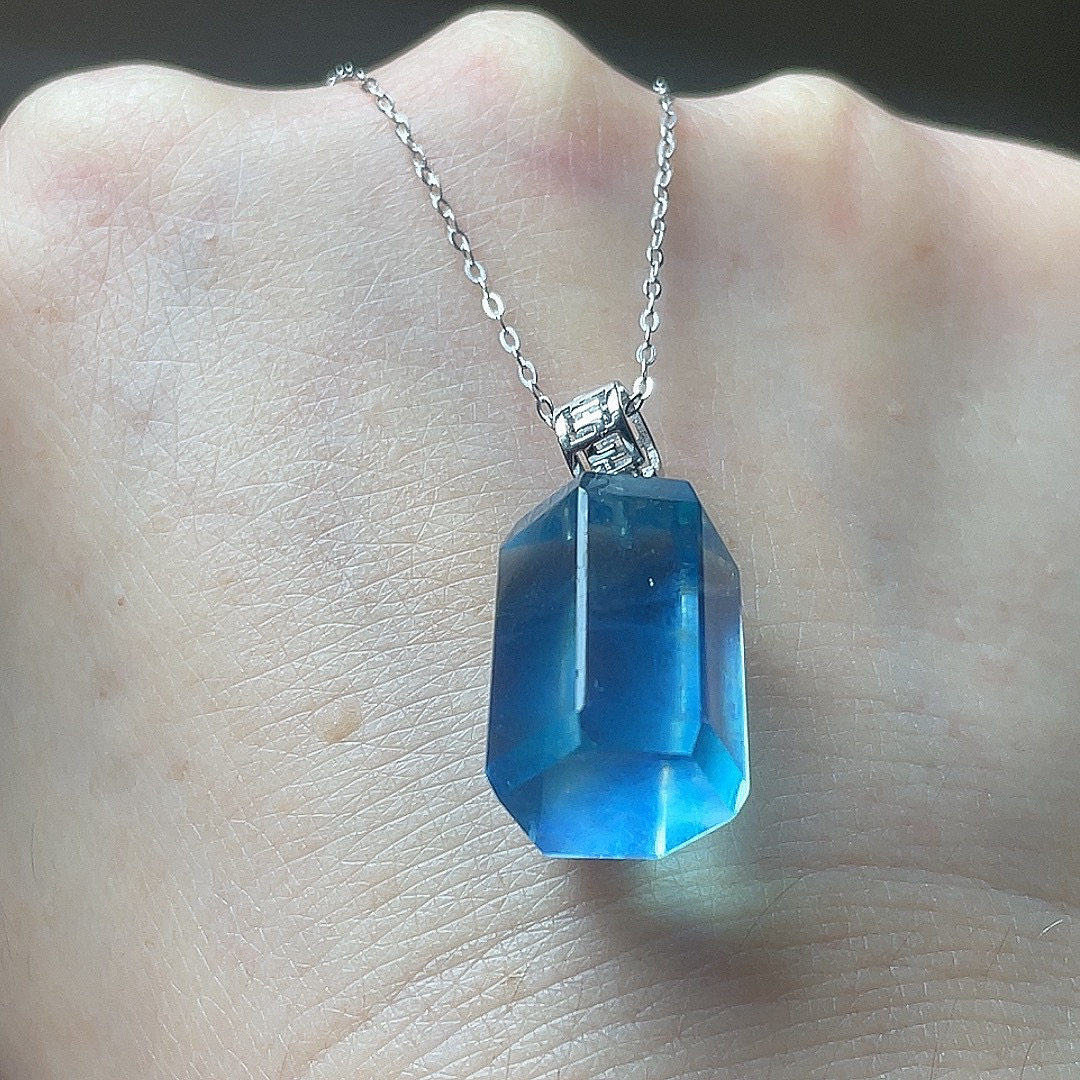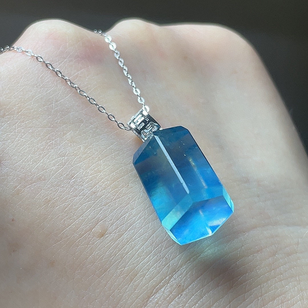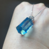 天然海蓝宝吊坠S925银镶嵌六角柱
