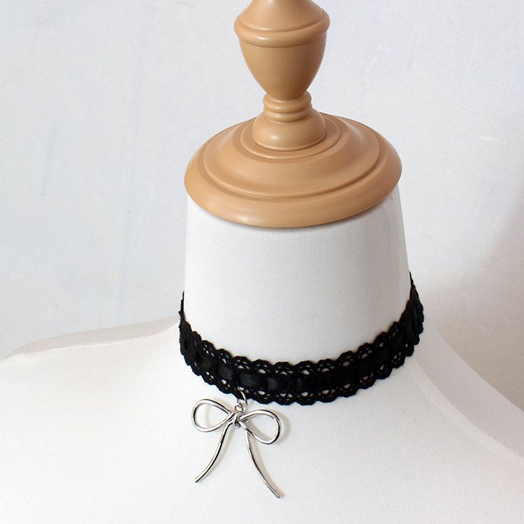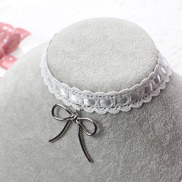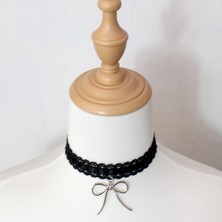 黑白蕾丝银色蝴蝶结choker颈饰环项链花边Lolita甜美简单少女日系