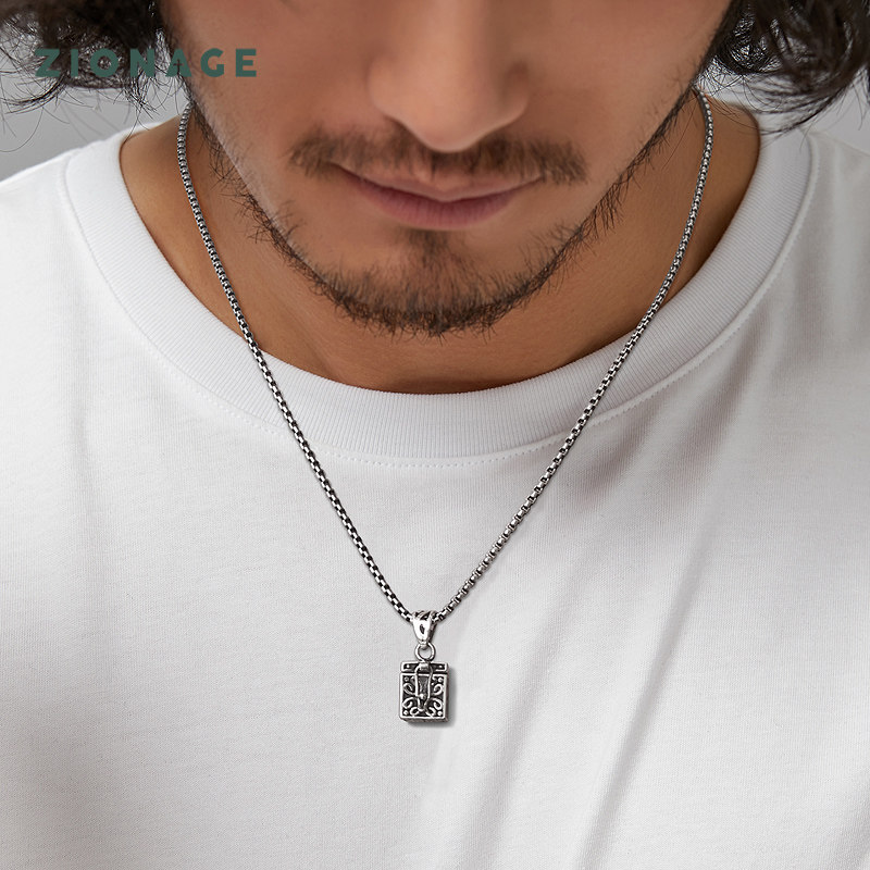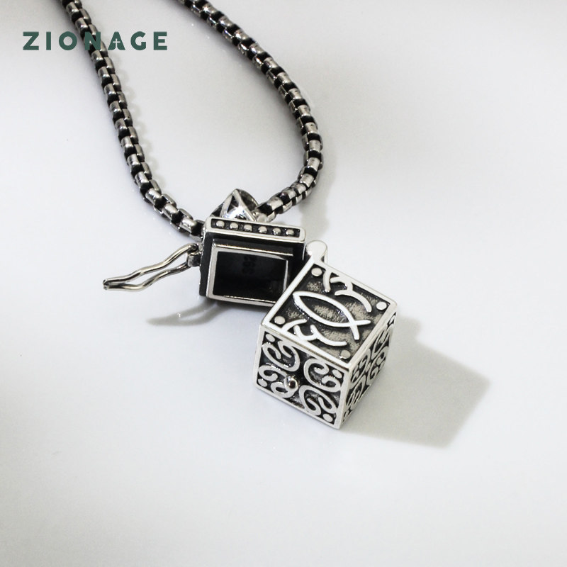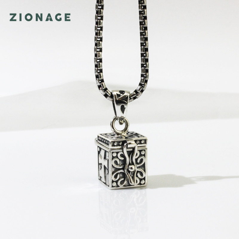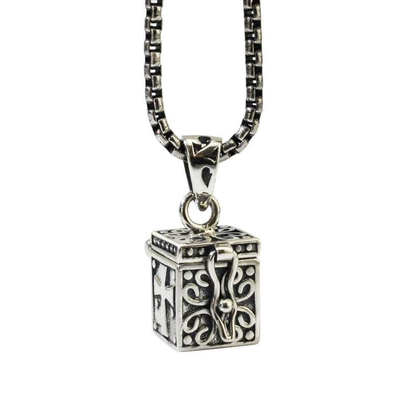 天果 复古925纯银可开启十字架方盒项链生日许愿纸条节日礼物吊坠