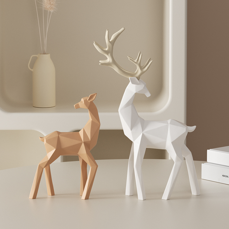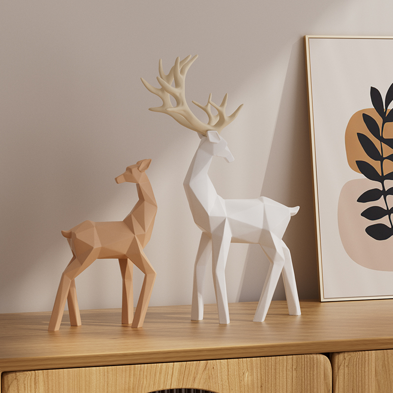 奶油风几何艺术鹿摆件高级感客厅柜子玄关酒柜新家乔迁家居装饰品