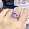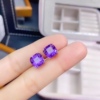 大颗粒方天然紫水晶戒指吊坠耳钉套装女S925纯银简约四爪紫色宝石