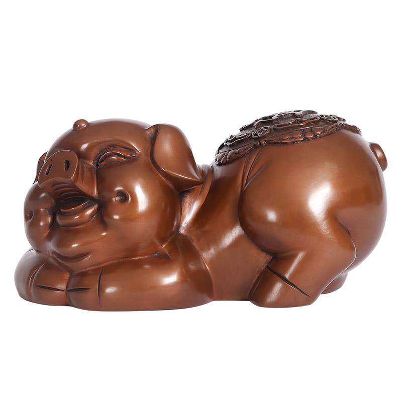 高档品紫铜猪摆件办生肖猪铜工艺装礼饰品客厅公室桌面摆设开业品