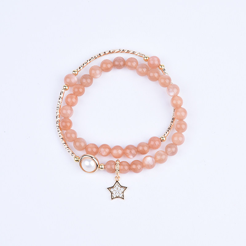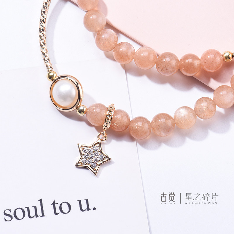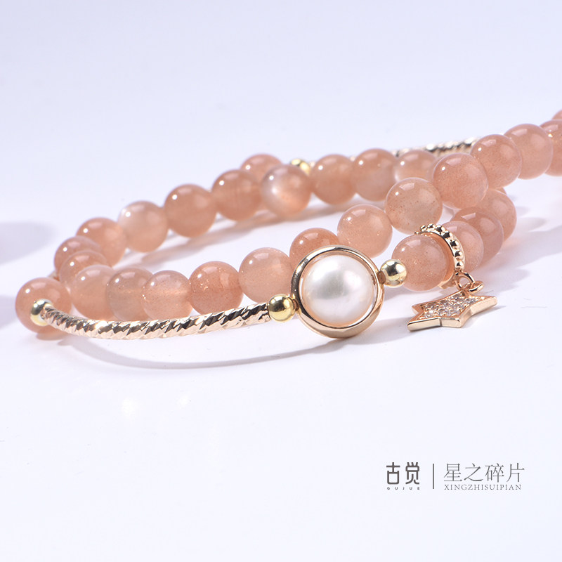 古觉橙色月光石淡水珍珠星星双圈手串气质礼物[星之碎片]