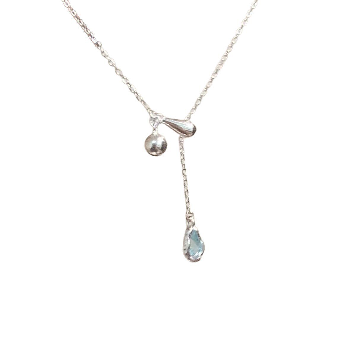蓝色锆石水滴吊坠925项链女轻奢小众简约百搭颈链锁骨链
