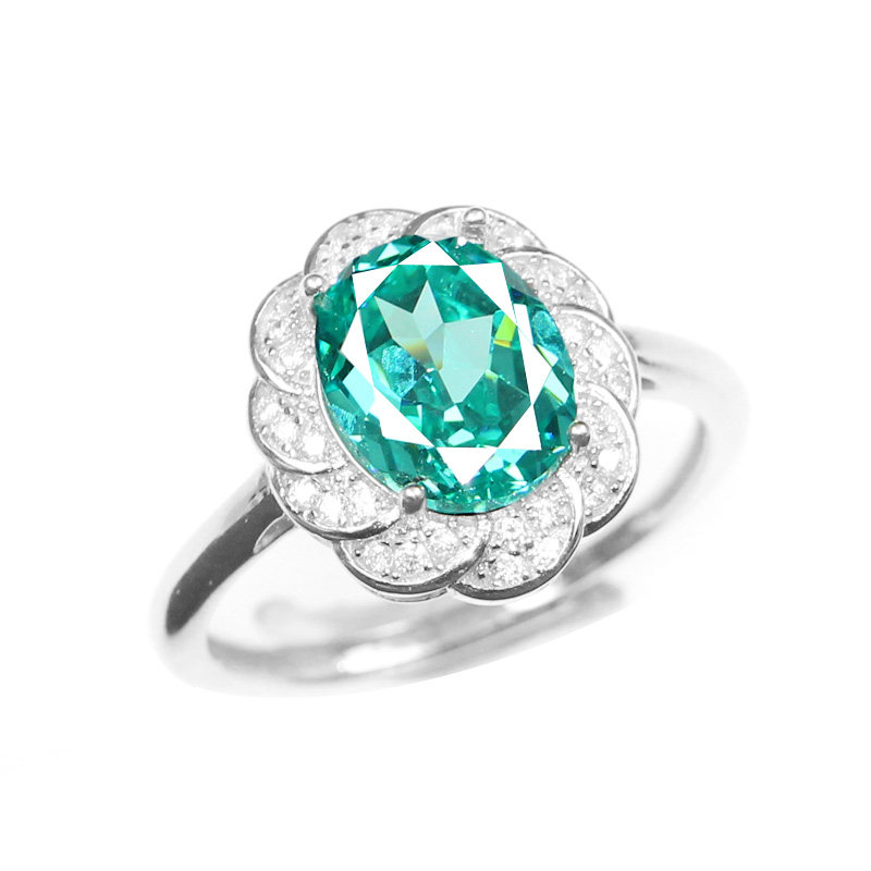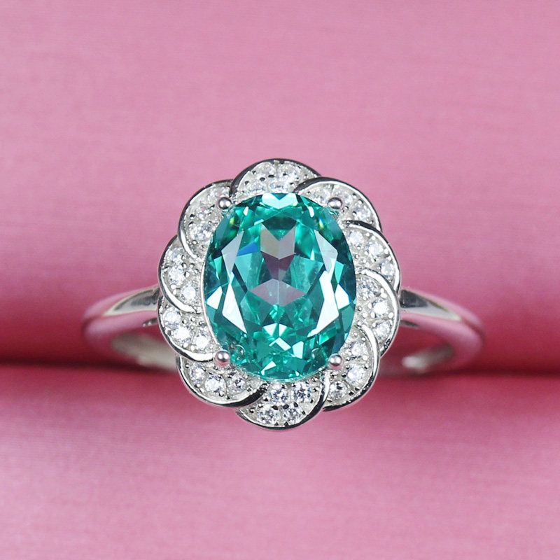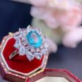 轻奢帕拉伊巴碧玺戒指女925纯银不掉色孔雀蓝绿色时尚韩版潮活口