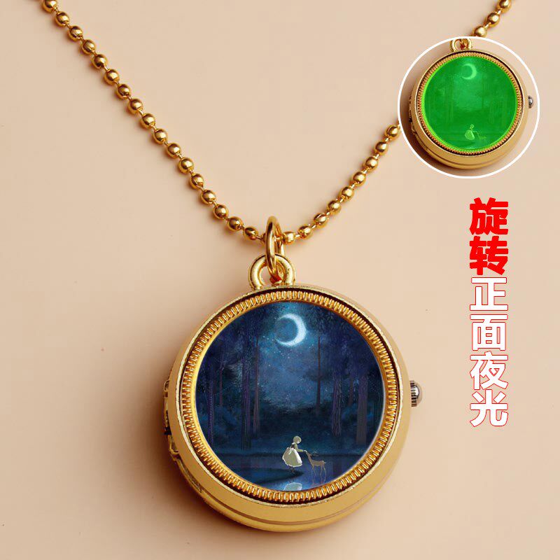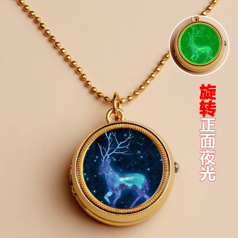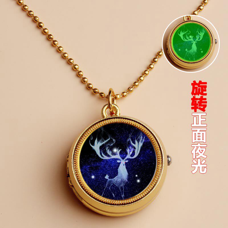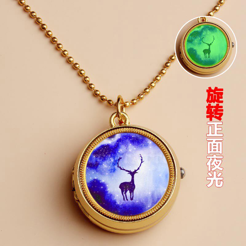 夜光麋鹿定制照片儿童怀表学生少女孩翻盖怀表项链生日礼物diy手